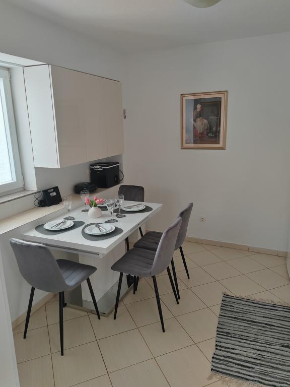 A ház Šibenikben, a Mandalina-félszigeten található, tengerre néző kilátással (jachtkikötő). Két hálószobával, két fürdőszobával, nappalival, étkezővel konyhával és terasszal, kültéri zuhanyzóval. 5 perc autóútra a városközponttól és a szupermarkettől, 10 perc autóútra a legközelebbi strandtól.