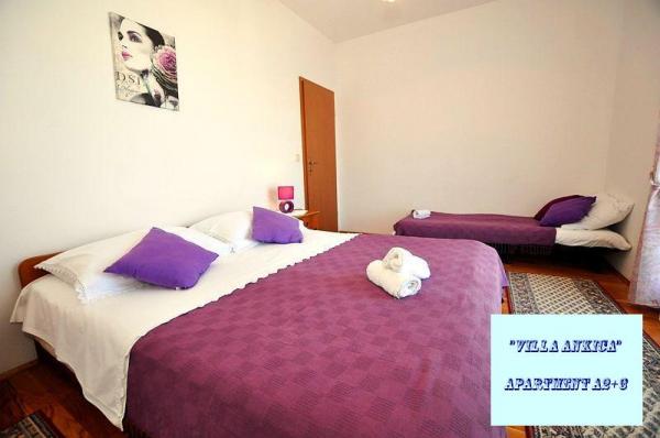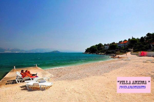 A Villa Ankica Slatine-ban található, Ciovo szigetén, Trogirtól 4,5 km-re, az Adriai-tenger egyik legszebb városában, amelyet az UNESCO védett. A villa körülbelül 1 órás autóútra található a Krka Nemzeti Parktól. A villa 1100 négyzetméter területen fekszik. A villa kapacitása 20 fő. A földszinten található az A6 apartman. Az első emeleten A4j apartmanok és kb. A3 2. A második emeleten található az alkalmazás. A4. Békés környezetben élvezheti nyaralását négy modern apartmanunk egyikében, gyönyörű kilátással a tengerre. Minden apartman légkondicionált, műholdas TV-vel és egy nagy terasszal rendelkezik. Nyaralása alatt autója, kerékpárja vagy hajója biztonságban lesz a nagy, zárt parkolónkban. A gyönyörű kertben található grillen elkészítheti dalmát specialitásokat, és élvezheti a helyi borokat, pálinkákat, likőröket és öko-olívaolajat.