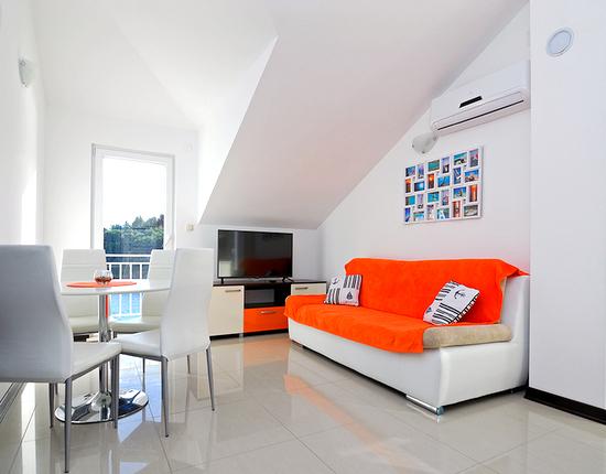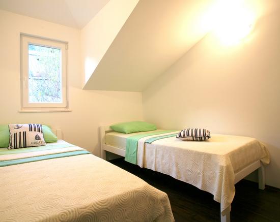 Az újonnan felújított Ogi apartman egy családi ház legfelső emeletén található, közvetlenül a tenger mellett, egy csendes Gornje Krušice-öbölben, gyönyörű kilátással a tengerre és a zöld dombokra az öböl túloldalán. A vendégek itt mindent megtalálnak, amire szüksége van a tengerhez, és a szomszédos öblök felfedezéséhez. Ez a napos apartman nyitott nappalival rendelkezik kanapéval, síkképernyős TV-vel, étkezőasztallal és gyönyörű, teljesen felszerelt konyhával. A nappaliból kiléphet a két erkéllyel, ahol élvezheti a gyönyörű környezetet. Az Ogi apartman két hálószobával rendelkezik, melyek közül az egyik franciaággyal és a másik két egyszemélyes ággyal rendelkezik. A modern berendezésű fürdőszobában zuhanyzó és WC található. A kertben szőlő, füge, citrom ... Az Ön rendelkezésére áll egy terasz a lakás előtt és egy rejtett hely az olajfák alatt, valamint egy szabadtéri grillező, ahol halat, húsokat vagy friss zöldségeket főzhetnek ... a nyár finomságait. Ebben a gyönyörű öbölben tiszta, tiszta vízzel élvezheti az úszás és a búvárkodás örömét az akarat akarata iránt.