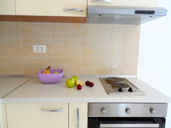 Ez a nyitott és szellős lakás limetta A1 kínál egy csodálatos nyaralás a tengerparton. Ez egy nagy nappali, amerikai konyha. Vannak modern étkező, és egy nagy sarok kanapé, amely biztosítja a kényelmes alvást helyet két ember, mielőtt az új lapos képernyős TV. Kilátás a teraszról elé nappali biztosított közvetlenül a türkizkék tenger. Itt biztosan élvezni a reggeli, ebéd vagy vacsora. A hálószoba franciaággyal pihenhet éjszaka - a nyitott ablakon aludni kövesse a szelíd hang hullámok. A fürdőszobában zuhanyzó és WC-vel, és még a mosás a nyaralás ideje alatt.