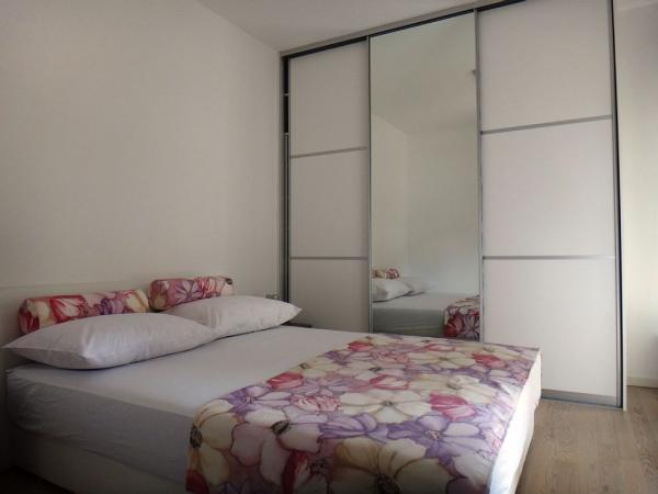 Egy hálószobás apartman 4 fő részére, teljesen felszerelt, modern és légkondicionált. Ez áll egy hálószoba, konyha, fürdőszoba és terasz kerti. A szobában egy franciaágy, a nappaliban kanapéval mérő 140 * 200cm. Parkolási lehetőség a zárt garázsban, és megvan az a képessége és külső ingyenes parkolási lehetőséggel. Az egész épület videokamerás megfigyelés alatt áll. A lakás igazítani kerekesszékkel. Távolság a tengertől mindössze 100 méterre, szupermarketek, éttermek és bárok találhatók lépéseket. Ebben az épület előtt van egy buszmegálló, egy vonalat, amely egyenesen vezet a város központjában.