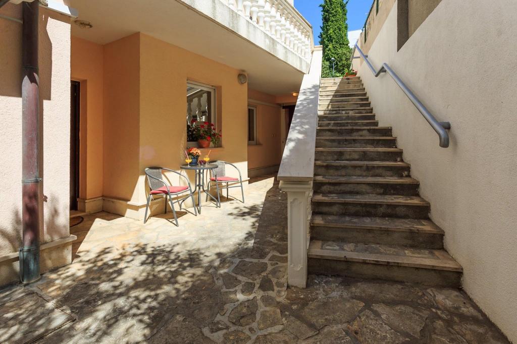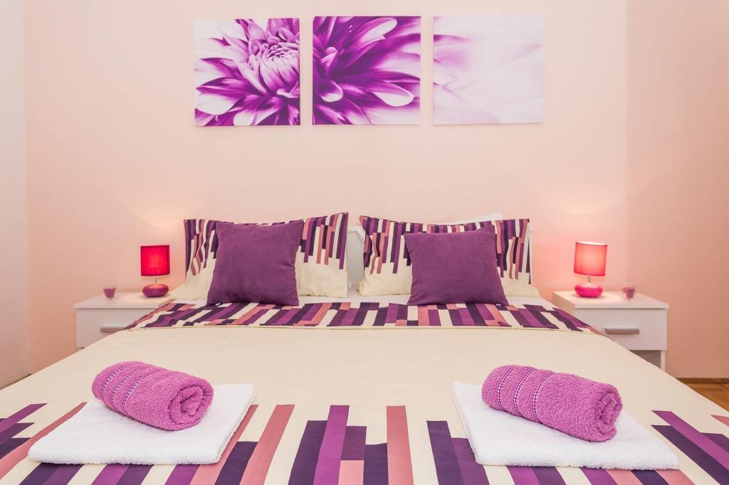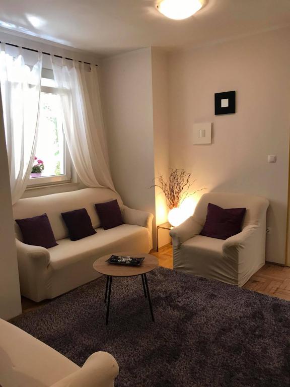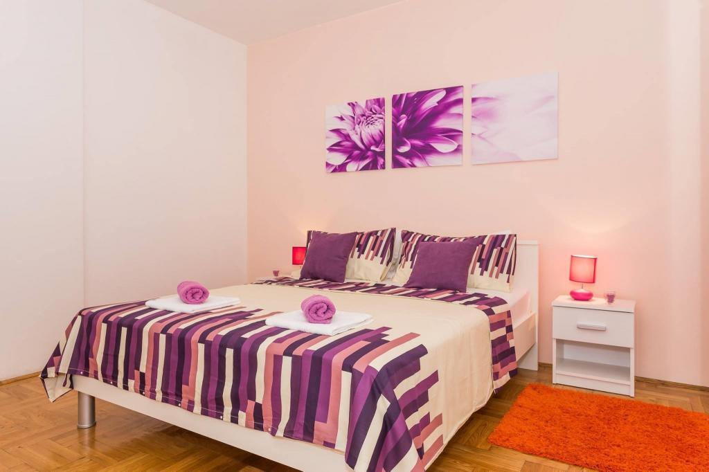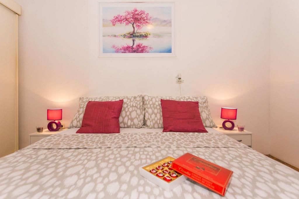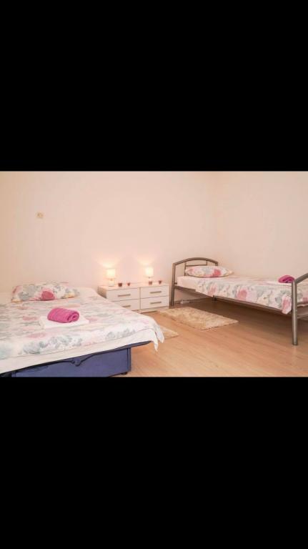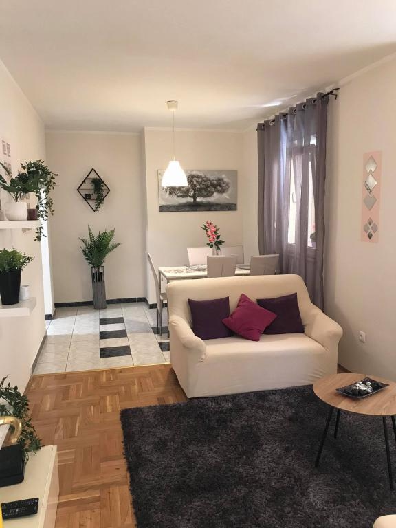 A lakás az első sorban található a tenger felé egy új épületben. Az apartman két nagy hálószobával rendelkezik dupla ággyal, két WC-vel, konyhával, étkezővel, nappalival és terasszal. Az apartman 200 méterre az első kavicsos strandtól és 300 méterre a homokos strandtól. Az első kávézótól és éttermetől kevesebb, mint 100 méter, a Renato kávézó, a Tennis bár és a Mythos, a Velo Misto és a Barkarola étterem. A távolság a városközponttól gyalog körülbelül 20 perc. 100 méter távolságra teniszpályák vannak bérelhetők.