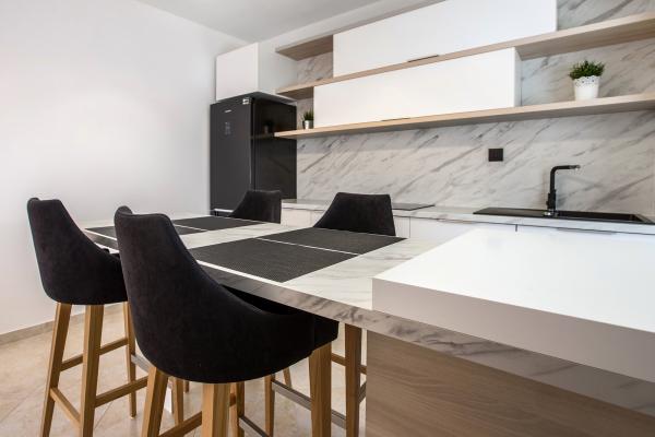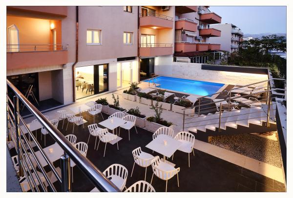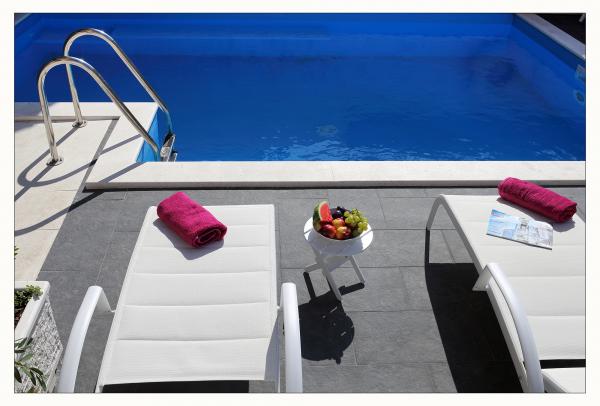 Modern berendezett kétágyas szobák és apartmanok egy privát villa medencével. A szobákban dupla ággyal, műholdas TV, légkondicionáló és minibár. Két hálószobás apartmanok egy hálószoba egy franciaággyal és egy hálószoba két egyszemélyes ággyal; nappali kanapéval és egy konyha étkezővel. A villa található egy csendes környéken, 1, 2 km-re a strandtól Žnjan és 3, 8 km-re Split központjától.