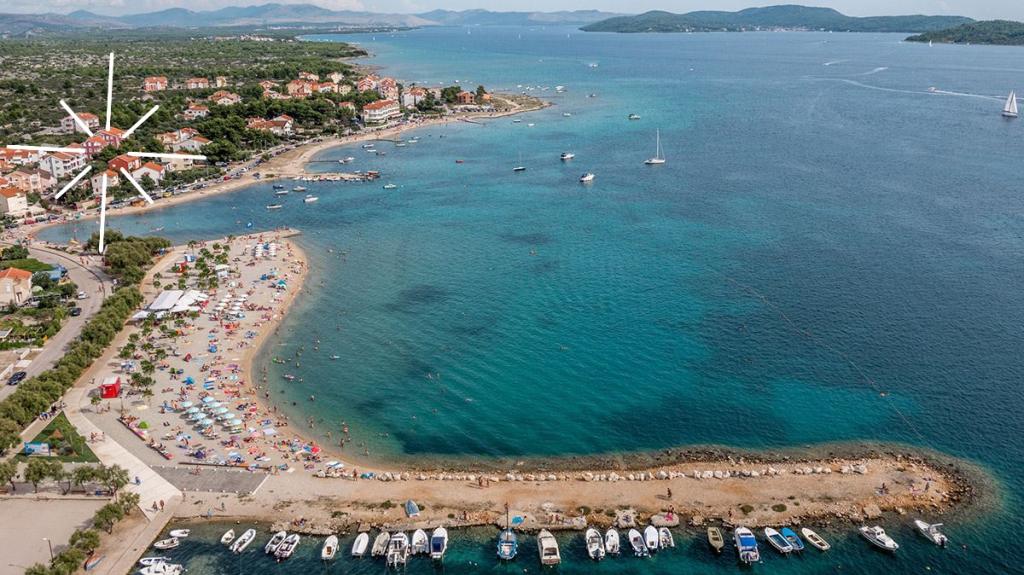 Új és modern apartman Srima csendes részén, Vodice közelében, tengerre néző kilátással. A gyönyörűen parkosított strand kb. 100 méter. A létesítmény kb. 200 méterre a falu központjától, és 25 percnyi sétára (a sétányon) Vodice városáig.