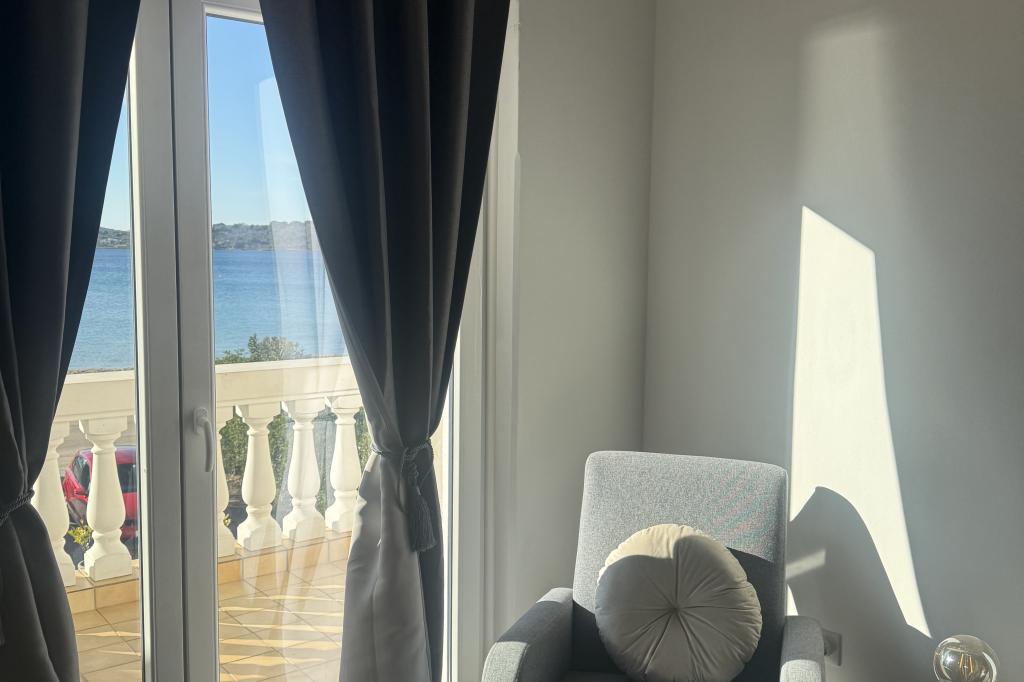 Közvetlenül a tenger mellett, Srimában, egy családi ház első emeletén modern apartmanok kiadók. Minőségi készlet, légkondicionálás, felszereltség általában kielégíti a többre vágyó vendégeket. Az apartmanok egyesítésével a kényelmes két- és háromágyas szobák egy turistacsoportot is el tudnak fogadni. A késői tengeri kilátás is hozzájárul a biztonságérzethez és a kikapcsolódáshoz.