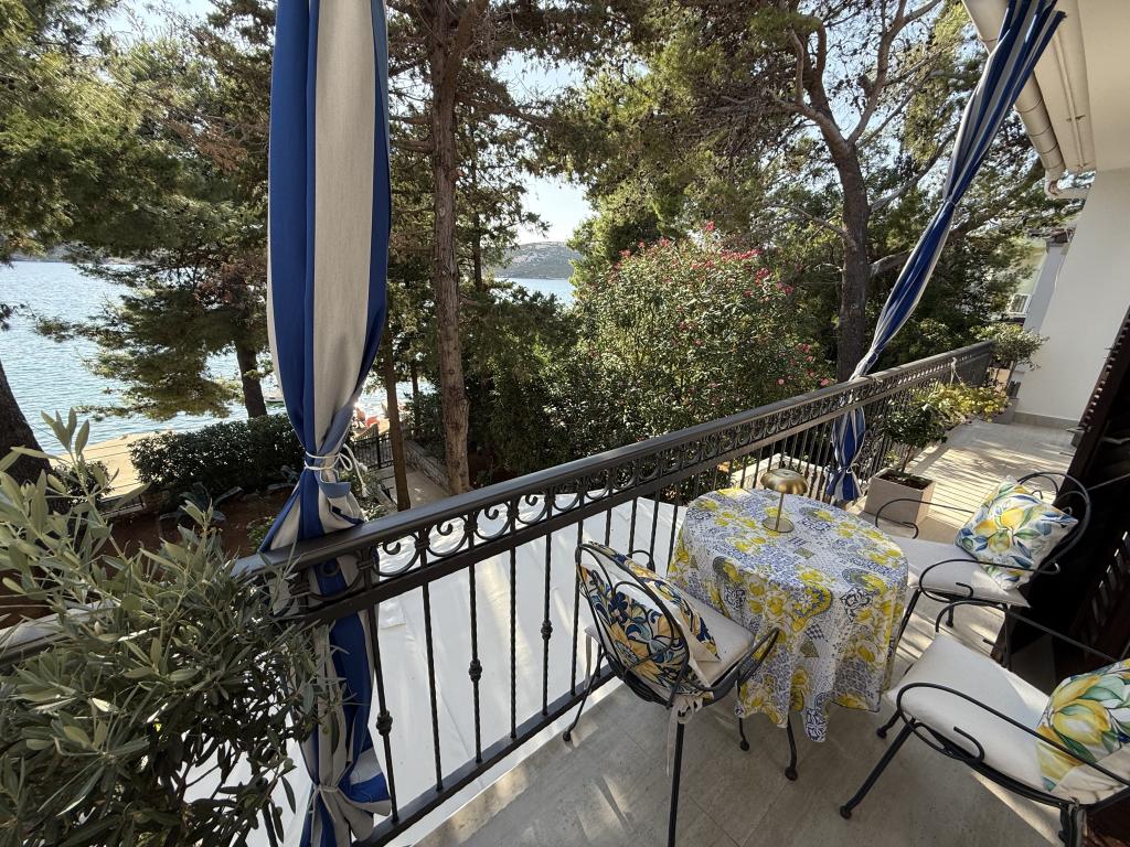 Mind a 4 apartmanhoz tartozik egy privát strand a ház előtt, nyugágyakkal, zuhanyzóval és fenyőárnyékban. 1. Az A4+2 apartman egy romantikus ház földszintjén található, az első sorban a tengertől (10 m). Két hálószobával és egy kanapéággyal rendelkezik a nappaliban. Az apartmanhoz saját, nagy terasz tartozik, gyönyörű kilátással a tengerre. Ideális gyermekes családok és akár 5 fős baráti társaságok számára is. Lehetőség van az A4+1 apartman bérlésére az első emeleten ugyanabban a házban, és az egész ház használatára. 2. Az A4+1 apartman az 1. emeleten 2 hálószobával és egy pótággyal rendelkezik a nappaliban. Erkéllyel, mesés kilátással és egy 20 m2-es saját terasszal rendelkezik. 3. A stúdióapartman egy másik kisebb házban található, a kertben, az első ház mögött, 30 méterre a tengertől. 4. Az A2+2 apartman egy másik kisebb házban található, a kertben, az első ház mögött, 30 méterre a tengertől. A béke és a magánélet, különösen júniusban és szeptemberben, ezeknek az apartmanoknak az előnyei, amelyekről sokan azt mondják, hogy olyanok, mint a mennyország a földön. Háziállatok nem megengedettek (kistestű kutyák, maximum 7 kg-ig, kérésre).