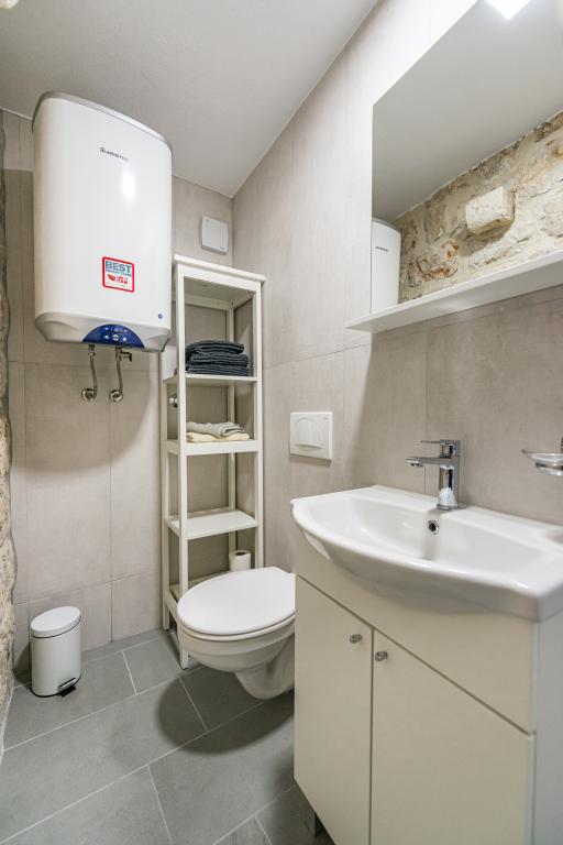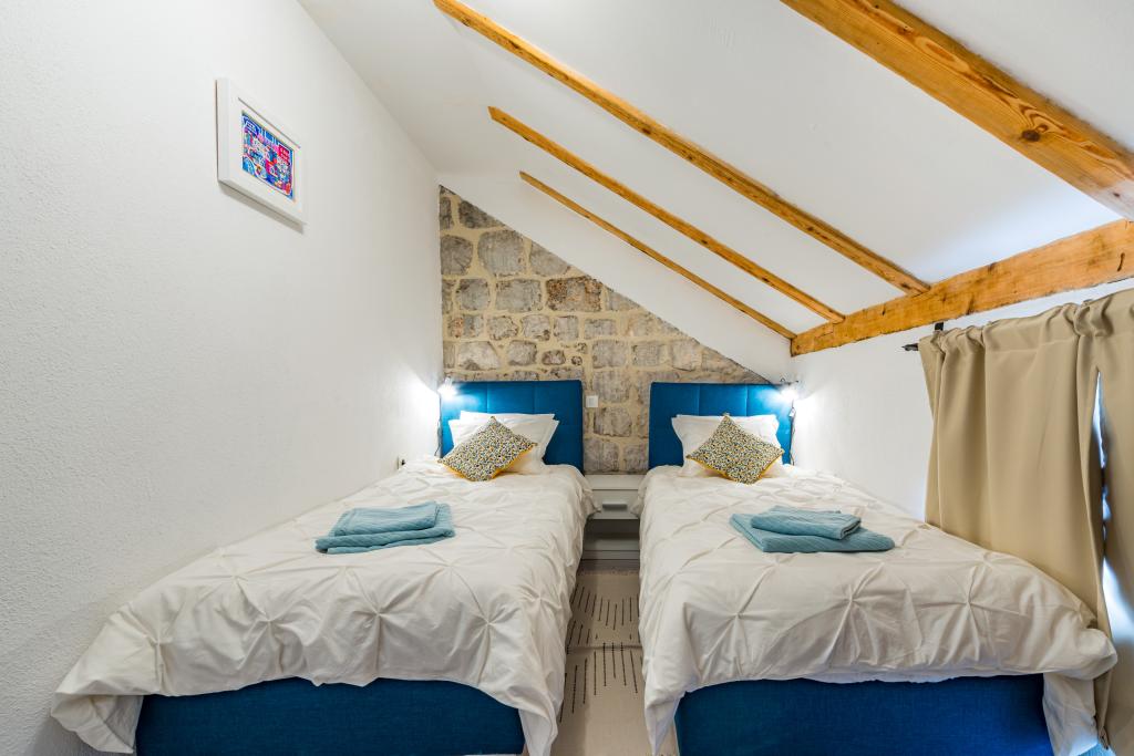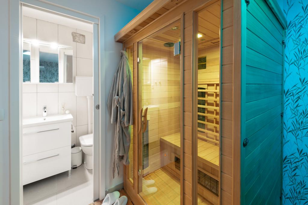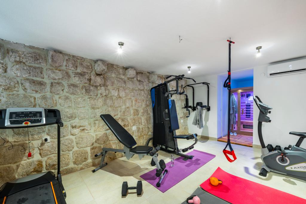 Ez a gyönyörűen berendezett, rusztikus, hagyományos villa nemrégiben felújításon esett át, külön bejárattal rendelkezik, és 100 négyzetméteres lakóterületet foglal magában, kizárólag a vendégek privát használatára. A szobákban 4 fő, a nappaliban pedig egy pótágyon fér el. A földszinten egy wellnessközpont áll rendelkezésére, amely magában foglal egy fitnesztermet/edzőtermet, infraszaunát és jakuzzit/pezsgőfürdőt a teljes kikapcsolódáshoz. A fürdőszoba az edzőterem mellett található. Az első emeleten található egy nappali síkképernyős Smart TV-vel (+ maxTv stream csatornák), egy étkező, egy teljesen felszerelt konyha és egy WC. A második emeleten 1 fürdőszoba és 2 hálószoba található: 1. hálószoba - Két egyszemélyes ágy 2. hálószoba - Két egyszemélyes ágy - A fürdőszobában mosógép és szárítógép található - Vasaló, vasalódeszka - Légkondicionáló a nappaliban/étkezőben, minden hálószobában és az edzőteremben/fitneszteremben - A fürdőszobák, a fitneszterem/edzőterem és a szauna/pezsgőfürdő padlófűtéssel felszereltek.