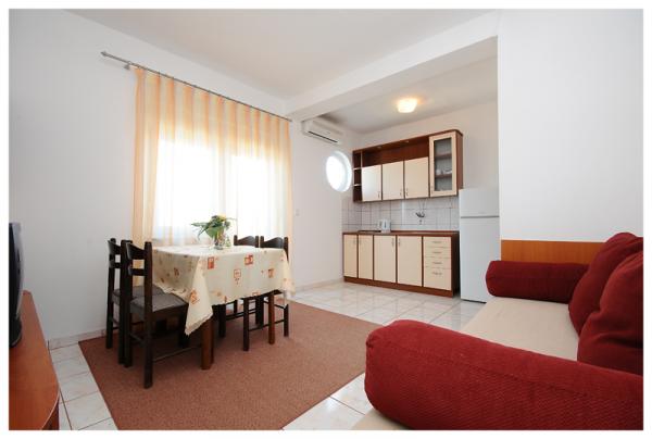 Teljesen felszerelt, modern apartman egy csendes Sukošan található a tenger mellett. A létesítmény található, 5 percre a városközponttól, üzletek, kórház, éttermek. Homokos strandtól 700 méterre.