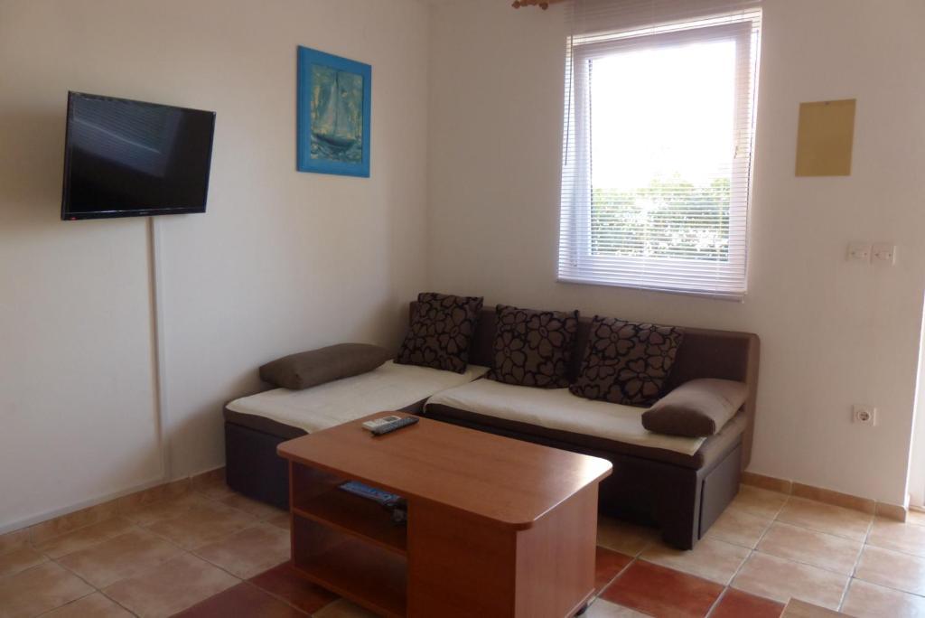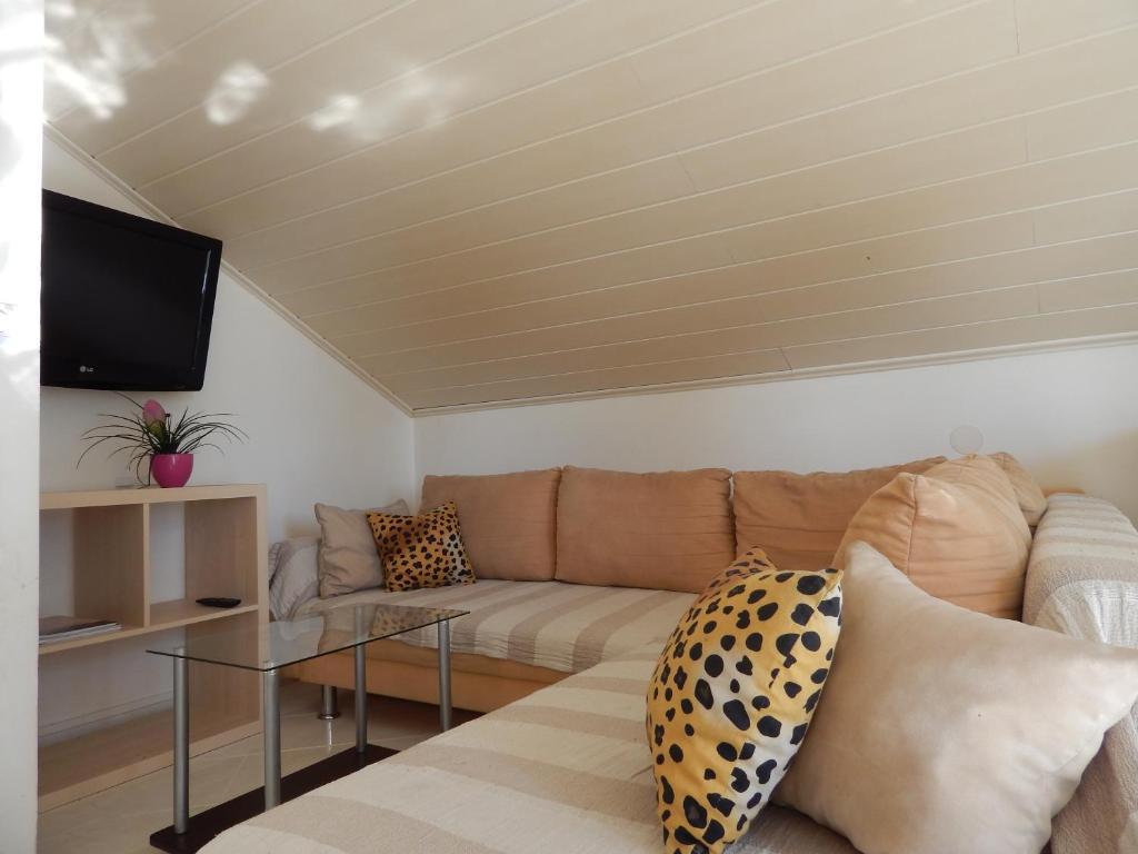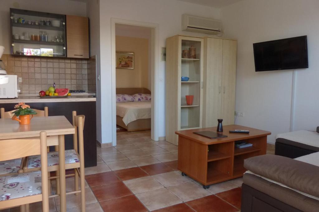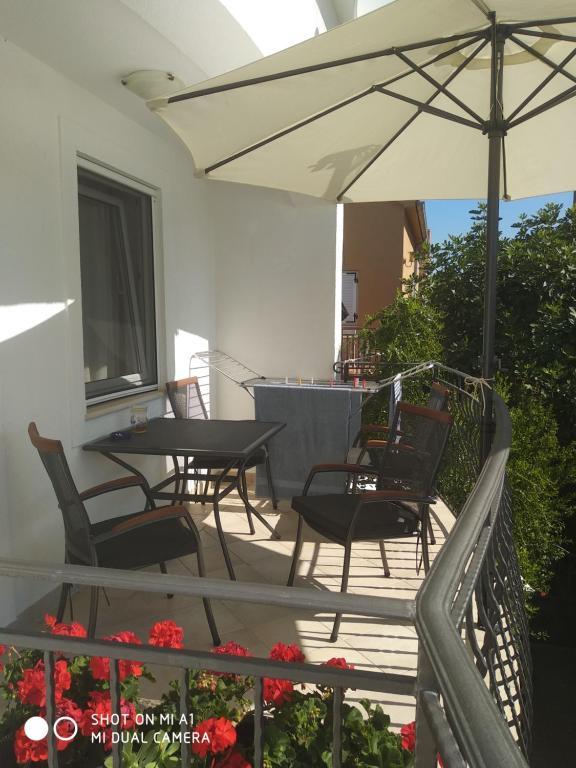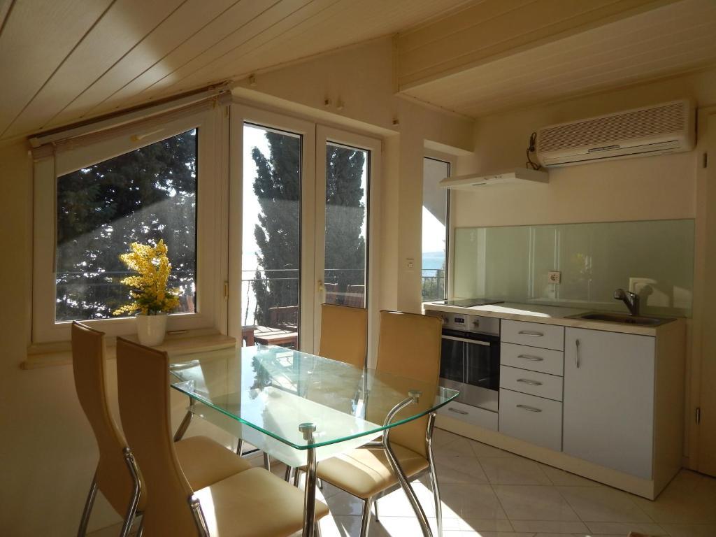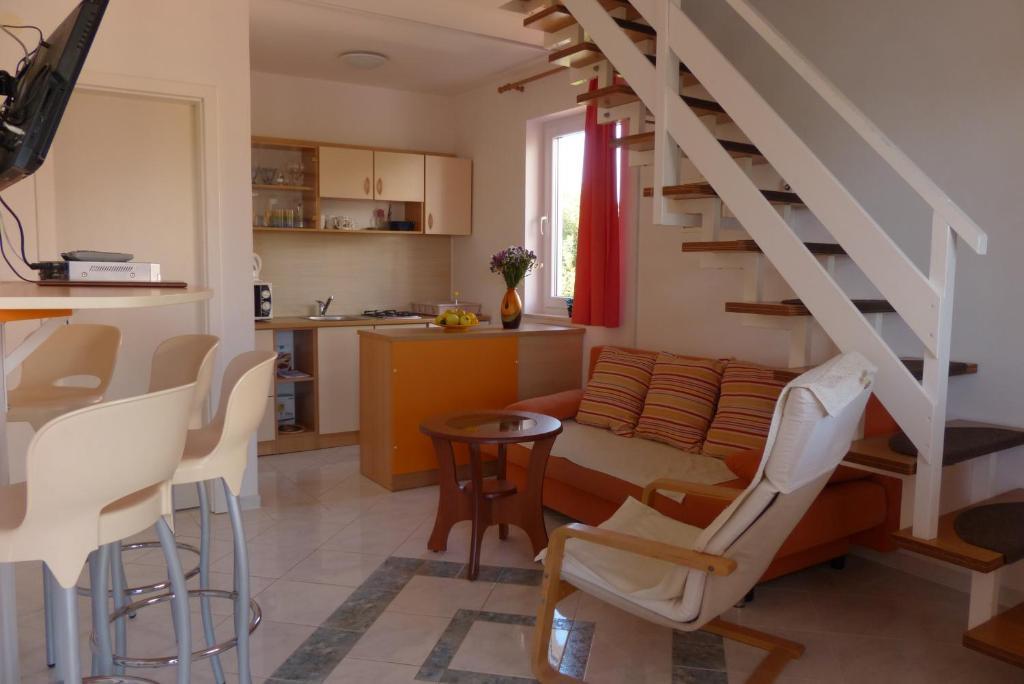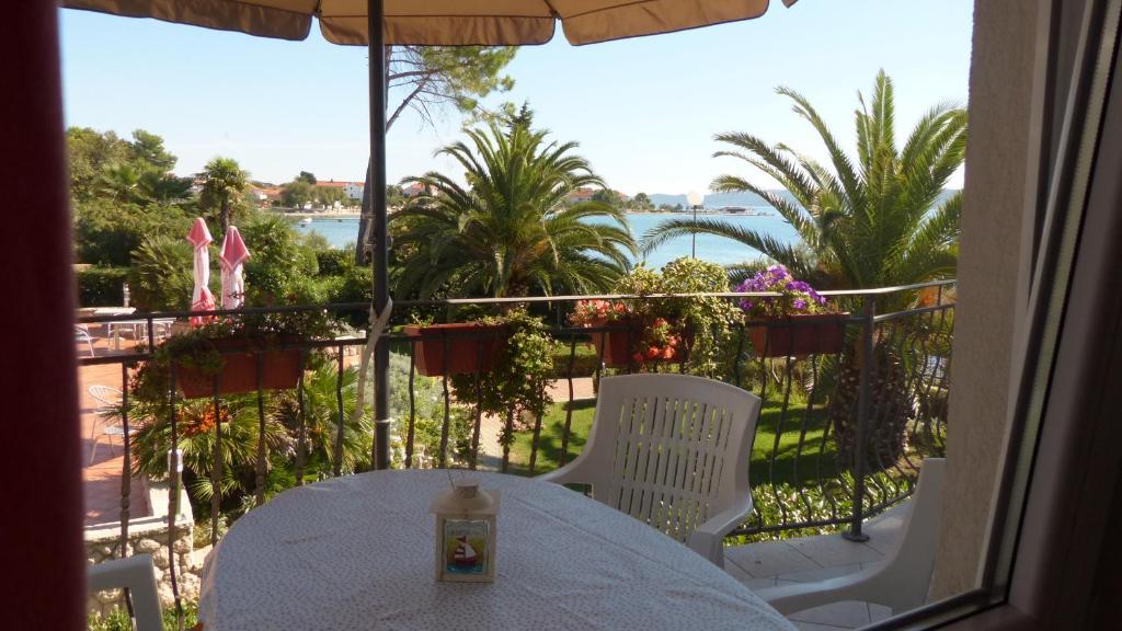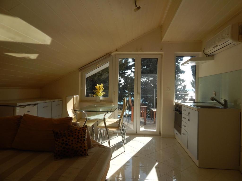 Az apartmanok a tengerparton találhatók, mindössze 7 méterre a tengertől. A ház és a strand között egy csendes sétány található, ahol nem lehet autóval áthaladni. Minden teraszról közvetlen kilátás nyílik a tengerre.
