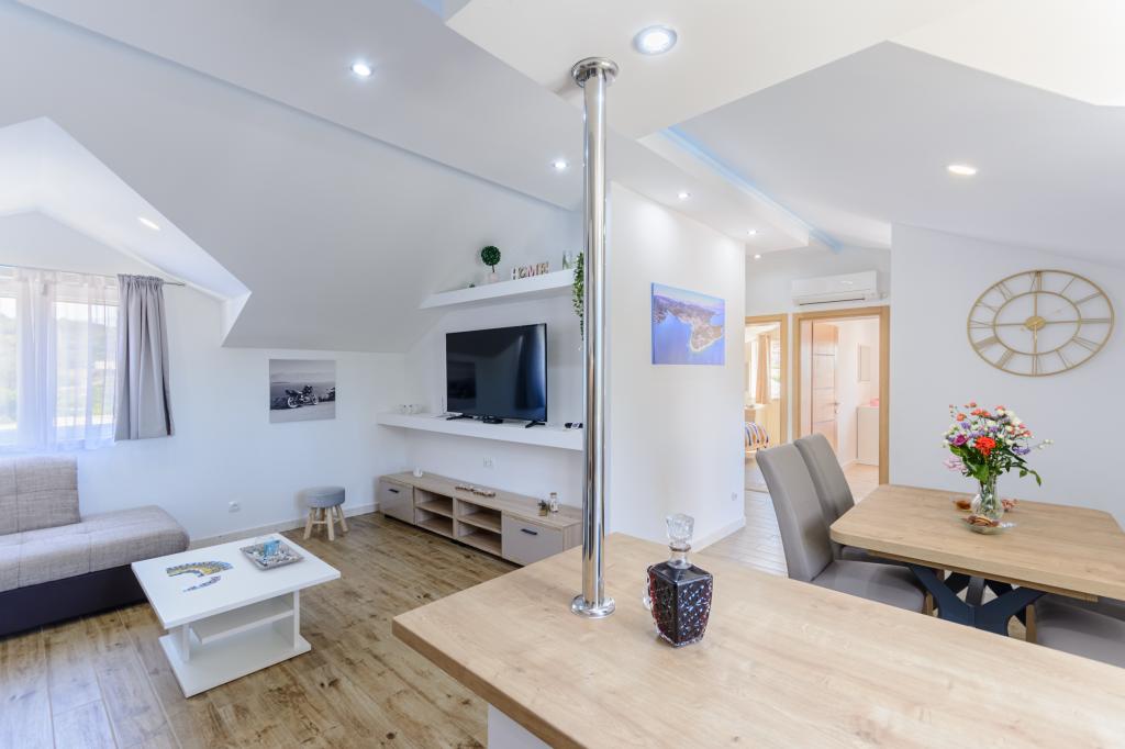 Üdvözöljük bájos apartmanunkban, amely Sumartin központjában található, a gyönyörű Brač-szigeten. Mindössze 100 méterre a tengertől, az apartman a kényelem és a kényelem tökéletes kombinációját kínálja. Az apartman akár 5 vendég (4+1) elszállásolására is alkalmas, és ideális családok, párok vagy barátok számára, akik pihenni és élvezni szeretnék a sziget varázsát. Élvezze a nyugodt tartózkodást gyalogosan elérhető strandoktól, éttermektől és a kikötőtől. Biztonságos parkolóhely is rendelkezésre áll. Várjuk érkezését!