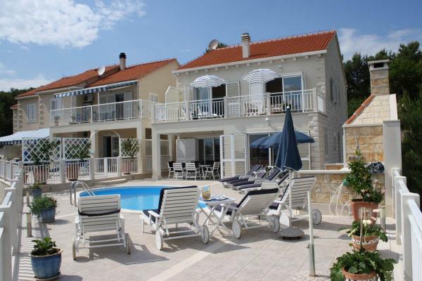 Mirula komplexum egyes villa 8 +4 és három apartman, egy 2 +2 és 4 +2 egyet. elhelyezésére összesen 16 +10 fő, vagy lehet szállást foglalni néhány szálláshely (villák és apartmanok). A villa egy medence, amely kizárólag arra a villa vendégei, de ha könyvet villák és apartmanok, együtt, a ház vendégei is használhatják a medencét. Minden emeleten a villa egy teljesen felszerelt konyha (tűzhely, sütő, mosogatógép, hűtőszekrény, mikrohullámú sütő, turmixgép, kenyérpirító, kávéfőző, kávé eszpresszó és cappuccino Maker) és berendezések a bárban. A teraszon a villa egy kő kandalló kiegészítők és elektromos grill. Négy hálószoba, öt fürdőszoba. Az apartmanok teljesen felszerelt, minden szükséges felszereléssel .. Minden szobához saját fürdőszoba, valamint vezeték nélküli internet minden szállás. A sajátossága a komplex Mirula még mindig része egy kis halászfalu és turisztikai település és kilátással a tengerre és a strand közelében.