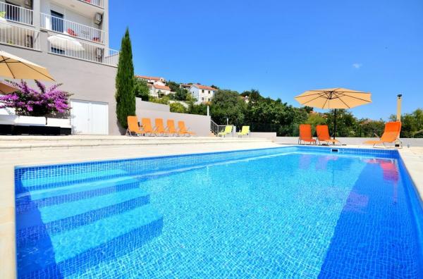 - 10 újonnan felújított, modern berendezésű apartman (legfeljebb 54 fő elszállásolására) - medence egy nagy terasszal, amely alkalmas összejövetelekre és rendezvényekre - multifunkcionális tárgyalóterem - közös helyiség (kocsma) társasági társaságokhoz és partikhoz - nagy terasz az épület tetején (200m2) kellemes esti összejövetelekhez, kilátással a csillagokra és a Brač-csatornára - saját parkoló - Ingyenes wifi az egész épületben - A Giant kerékpárok ingyenesen használhatók lakás vendégei számára és még sok más. .