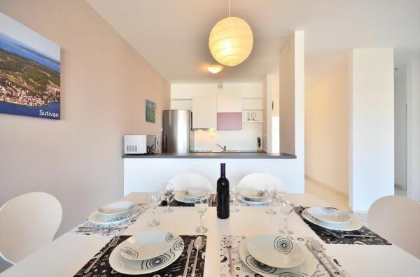 A modern módon felszerelt BRETIA apartmanok Sutivanben találhatóak, sétára az összes látnivalótól és létesítménytől, amelyek kellemesebbé és egyszerűbbé teszik az üdülést. A biztonságos privát parkolóval együtt, amely a vízparthoz, a strandhoz és a Sutivan központjához vezető 200 méteres sétány árához tartozik, napi gyönyörű gyalogútvá válik. A lakás vendégei számára medence, napozóágyak, napernyők, grill, játszószoba, tetőterasz, óriáskerékpárok állnak rendelkezésre. . A kényelmesebb tartózkodás érdekében az apartmanok LED LCD intelligens TV-vel, Wi-Fi internettel, konyhai felszereléssel vannak felszerelve. . Várjuk érkezését!