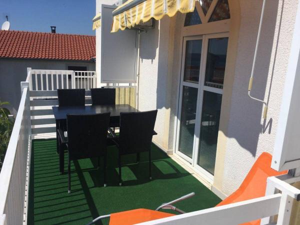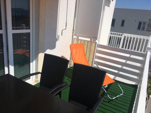 Tengerre néző apartmanok: terasz, légkondicionálás, fűtés, grill, parkoló, wifi. 450 méterre a strandtól. 400 méterre a központtól, 350 méterre a bolttól.