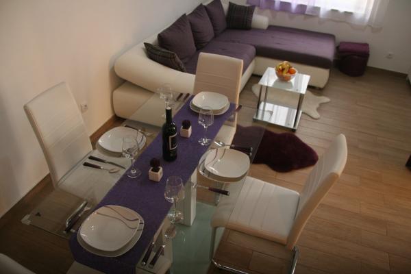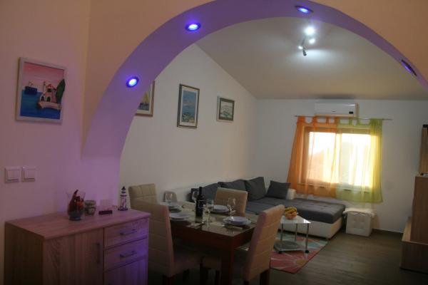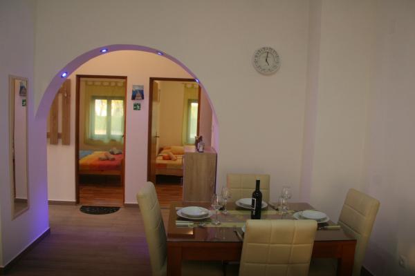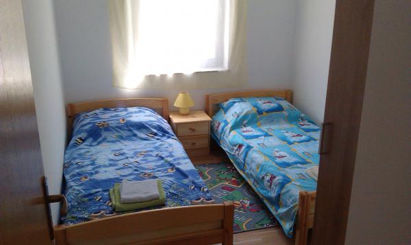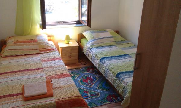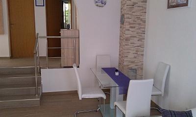 Az apartmanok egy teljesen csendes részén található, 5 percre a központtól, 7 percre a strandtól. Összességében a természet, ideális egy nyugodt nyaralás, és a gyermekek játékait. Minden apartman modern, található egy külön emeleten saját bejárattal rendelkezik. Mindegyik 2 hálószoba, 1 fürdőszoba, teljesen felszerelt konyha, nagy nappali kanapéval további 2 fő részére és egy terasz / erkély tengerre néző. A kertben van egy előre gyártott medence és trambulin - ingyenes. Az apartmanok felszereltsége: légkondicionáló, ára 5 € per nap használat. Elérhető barbecue. A parkolás ingyenes. Mosógép is rendelkezésre áll, az első mosás ingyenes, minden következőkkel ára 5 €. Host elérhető tartózkodása alatt. Segítség grill és barbeque is kérésre.