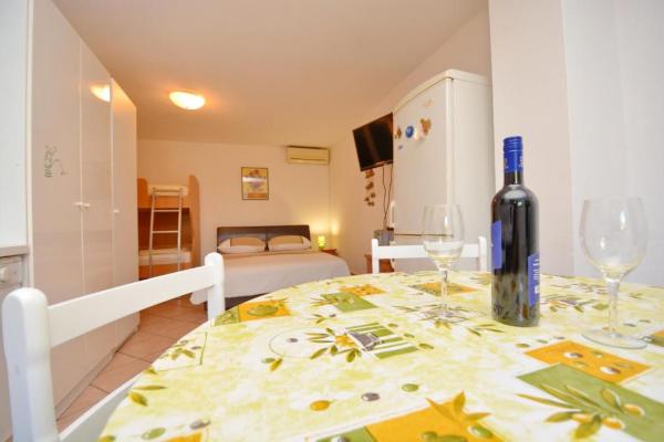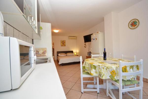 Stúdió apartman nagy terasszal, távol az út, és elhomályosítja a zöld és virág. Közel a strandhoz. Házigazdák barátságos és diszkrét.