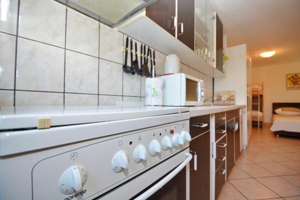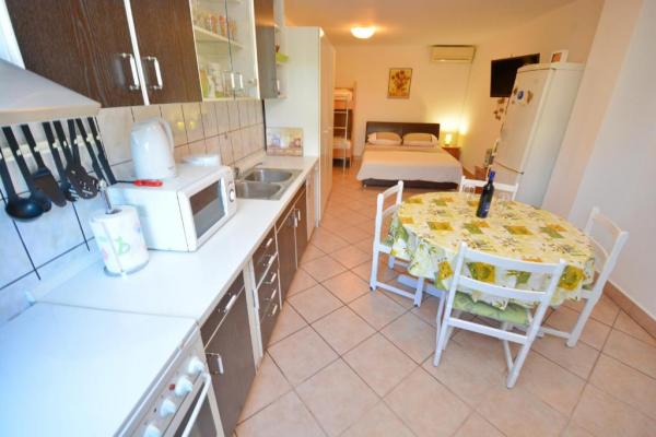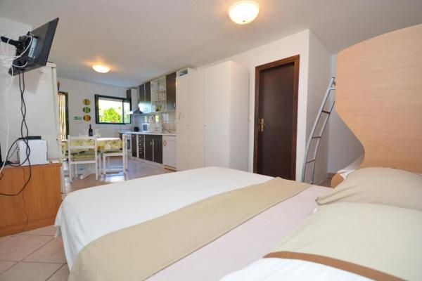Szép terasz, tele virágokkal, ahonnan valaki belép a tágas stúdió lakás. Neat, fel van szerelve mindennel, amire szüksége van .. (És több). Közel a strandhoz (kb. 3 perc séta). Házigazdák barát! Üdvözlettel, Mrs. Árnyék és Mr. Davor szekciókból Mátyás, Sven, Sylvia és Daniel!