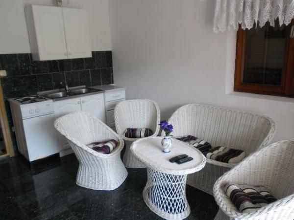 Apartman (6 fő) - a következő öt szoba és egy nagy terasz. Ezek közül a két szoba dupla ággyal, egy hálószoba két egyszemélyes ággyal, nappali konyhával és pótággyal, fürdőszoba zuhanyzóval. App közé TV, ST, légkondicionálás, hűtőszekrény fagyasztó nagyobb. App területe 70 négyzetméter. Apartman (4 fő) - amely a három szoba, nagy teraszok és erkélyek. Ezek közül az egyik hálószoba franciaággyal és egy szoba két egyszemélyes ággyal, fürdőszoba zuhanyzóval és nappali konyhával és pótágyazható. App közé TV, ST, légkondicionálás, hűtőszekrény fagyasztó nagyobb. App területe 50 négyzetméter. Mi található végén a nem túl zsúfolt a strandon. Tartózkodás elkülönül a szobában. Gyönyörű kilátás nyílik a sziget és a tenger, grill, parkoló tenger 70 méter ACTION APP A4 (a) a kifejezés APP A6 (b) a kifejezés kifejezés