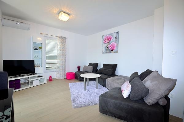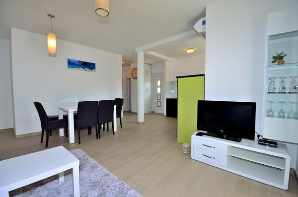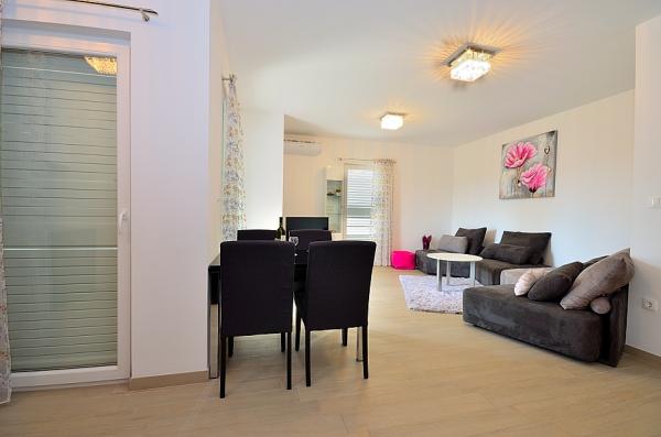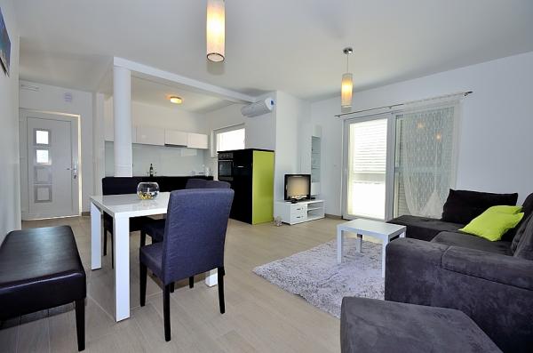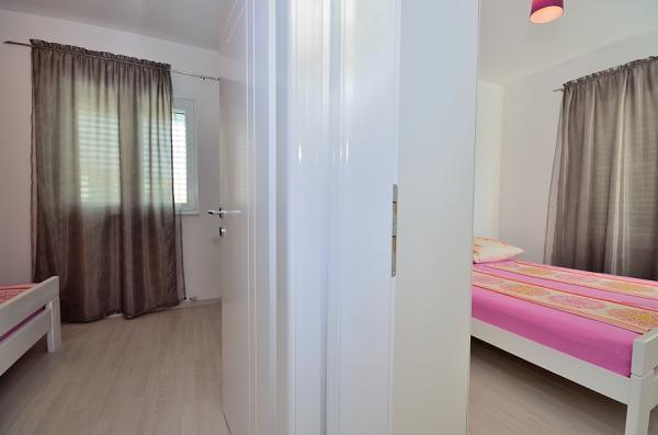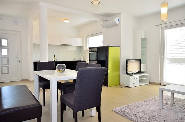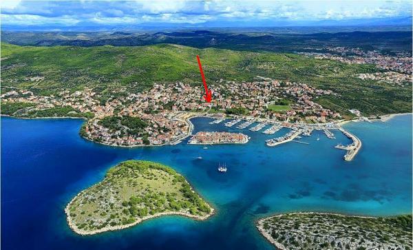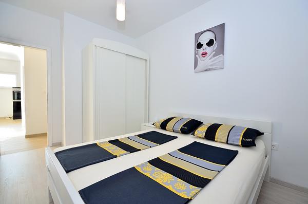 Tribunj- apartman két hálószobával ágy, WC, fürdőszoba WC, konyha és nappali, terasz, parkoló, légkondicionálás, 300 méterre a strandtól, 200 m-re a központtól, 100 m üzletek és éttermek .
