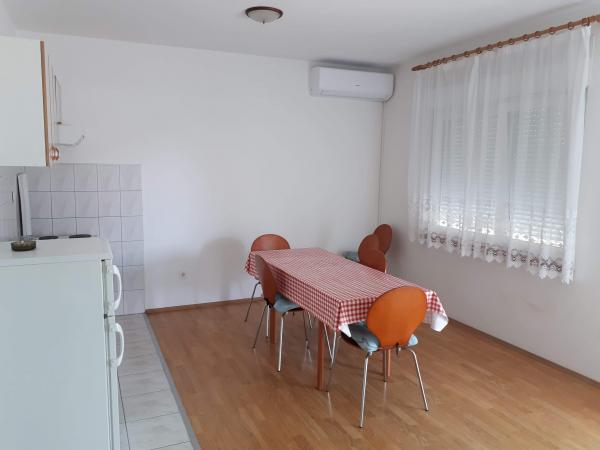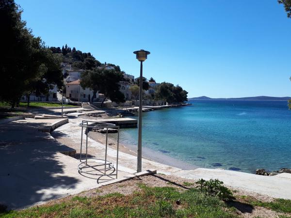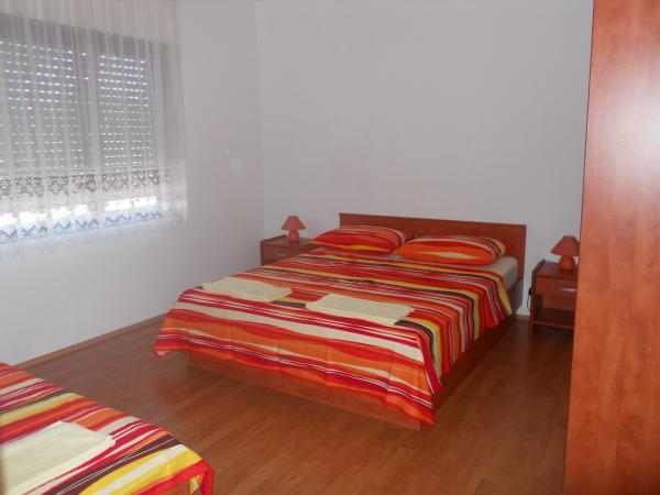 A tágas, felújított apartmanok egy csendes részén Tribunj, távol a strand Zamalin 3 min. járni, és 10 perc. séta a központban Tribunj. Mindkét apartman található, az emeleten, és nagy erkéllyel (nagy apartman 5 fő és egy terasz 35m2 az első, egy kis lakás 2 1 25m2 terasz a hátsó oldalán). Parkolás az udvarban.
