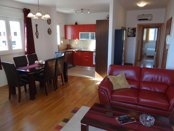 Apartman Marin található Ciovo szigetén mindössze 700 méterre (10 perc sétára) a történelmi város Trogir, amely az UNESCO védelme alatt áll. A tengerre és a fenyőerdőre néző terasszal rendelkező apartman mindössze 10 perc sétára van a strandtól. A kényelmes apartmanban két hálószoba található dupla ággyal, fürdőszoba, teljesen felszerelt konyha, étkező és nappali. Az apartman légkondicionált, és televízióval rendelkezik nemzetközi programokkal és ingyenes Wi-Fi-vel.