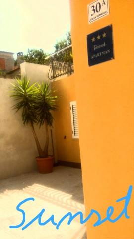 Az Apartment Sunset egy csendes helyen található, Mastrinka, 3 km-re Trogir központjától. Legfeljebb 6 fő befogadására képes (4 2). 3 csillagos kategóriába tartozik, és 60 m2-es kerttel rendelkezik. Tartalmazza a konyhát minden eszközzel, tűzhely, hűtőszekrény és fagyasztó, mosogatógép, kenyérpirító, TVsat PS 3 ,, USB lejátszó és mikrohullámú sütő. Minden szobából a tengerre nyílik kilátás. A fürdőszobában mosógép és szárító, valamint a lakásban két légkondicionáló található (nappali és előszoba). Két szoba kényelmét és tengerre néző kilátást nyújt. Csendes környezet és a strand közvetlen közelében nyújtja a szükséges nyaralást. Az apartman 350 méterre található a strandtól, ahol játszótér, zuhanyzó és további tengeri tevékenységek állnak rendelkezésre. Az apartmanban van a szükséges tisztítóberendezések, vasaló és vasalódeszka. Az udvaron grillező, kiegészítők és parkolóhely található. A teraszon van egy asztal és székek 6 fő részére egy pavilonnal. Egy 500 méterre található kávézó játszótérrel, valamint egy tengerparti étterem és kávézó, valamint egy vízipark található.