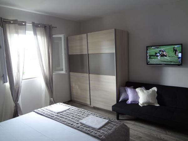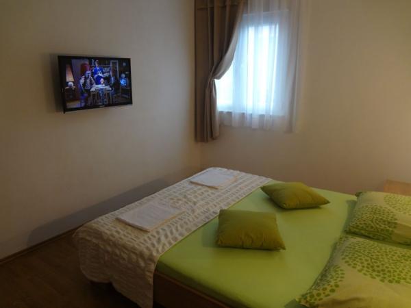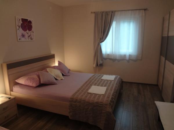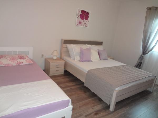Kínálunk két lakosztály (háromcsillagos). Mindkét apartman az első emeleten. Apartman A3 +1 két hálószoba és egy kanapé a nappaliban, apartman A2 +2 van egy nagy szoba, egy franciaággyal, egy egyszemélyes ágy és egy kanapé. Mindkét apartman dupla ággyal, jól felszerelt konyha, nagy hűtő, fürdőszoba, parkoló, klíma, kerti zuhany, grill és terasz. Okrug Gornji a Ciovo, amely kapcsolódik a szárazfölddel. Szóval ez alapvetően ez sziget és a szárazföld egyszerre. Lehet utazni ellenszolgáltatás nélkül, a kontinentális, vagy bármely más város az autót a hídon, amely a nap 24 órájában. A Okrug Gornji mehetsz Trogir autóval, busszal és hajóval. Trogir 2-4 km-re található Okrug Gornji és Split mindössze 27 km-re fekszik. Okrug Gornji híres kristálytiszta tenger és a 2 km hosszú kavicsos strand nevű Copacabana. Trogir, az eredeti érintetlen természet, nagyon vonzó a kocogás.