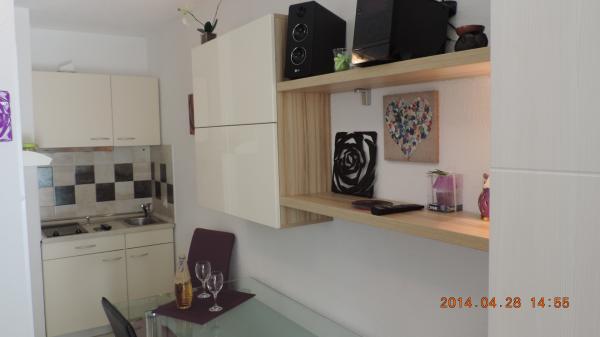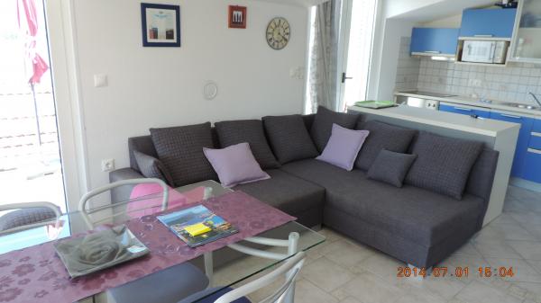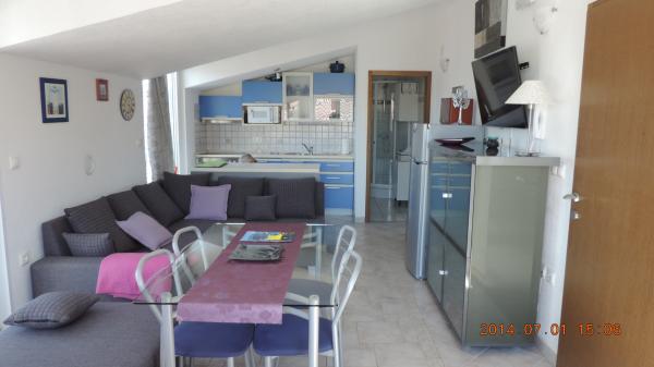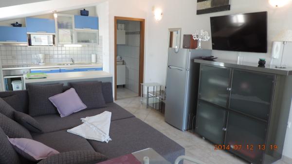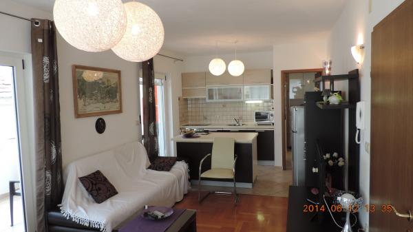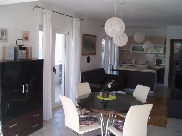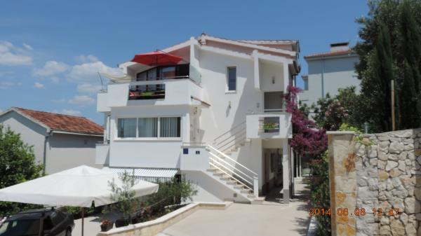 Apartmanok családi - penthouse Tanja, vonzó házban a tenger, alkalmas családok, kisebb csoportok és egyének. Villa Tanja található Okrug Gornji, a sziget Ciovo, közel a tengerhez, egy csendes helyen, mindössze öt percnyi sétára a strandtól. A strand húzódik az öböl körül, amelynek teljes hossza 2 km. A villa két luxus / penthouse lakosztályok (4 1) és egy stúdió apartman (2 0). A földszinten van egy nagy barbecue területen tálalóedényeket és beszél 12 fő. Ebben a ház előtt parkoló.