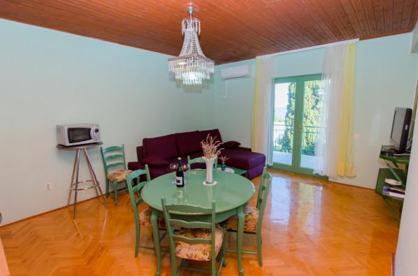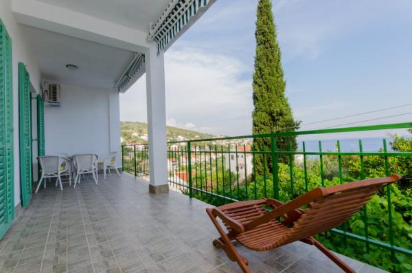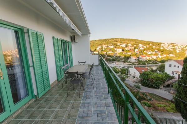 Kényelmes és tágas apartmanok az öbölben Mavarčica, Trogir, zöldövezetben, tágas erkélyek és teraszok a déli, a nyugati oldalon, és egy parkoló.