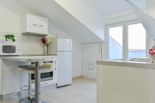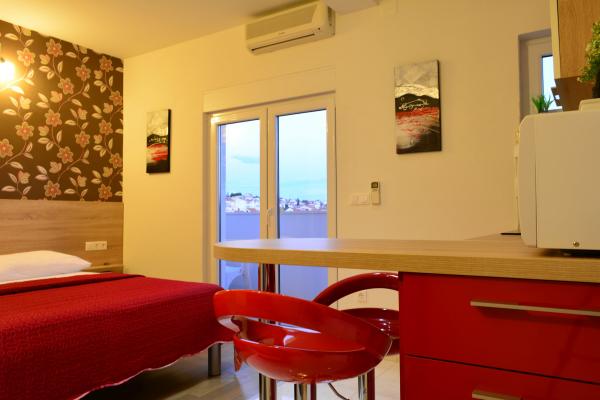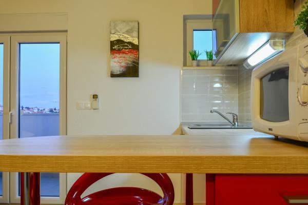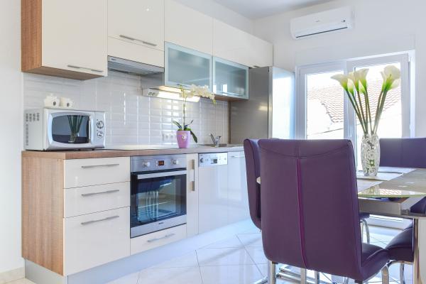 Luxury Villa Tea található mindössze 50 méterre a strandtól, a felső megyei és 1, 5 km-re Trogir. A repülőtér mindössze 5 km-re található. Azon vendégek számára elérhető ingyenes parkolást és vezeték nélküli internet-hozzáférés. Minden apatmani van tengerre néző erkéllyel és egy teljesen felszerelt konyha, mosogatógép, mikrohullámú sütő és vízforraló. Stúdió apartman és minden hálószobában és a nappali a lakás fel van szerelve TV-vel, műholdas TV-vel és légkondicionálóval. Fürdőszobában zuhanyzó, hajszárító és piperecikkek állnak rendelkezésre. Vasaló és vasalódeszka is igényelhető. A lakások két hálószoba, fürdőszoba minden szobában rendelkezésre áll, mint egy extra ágy a nappaliban két személy részére. Közel vannak különböző sportlétesítmények kölcsönzéseként jet-ski, siklóernyőzés és a lehetőség is, hajókirándulások. A strand gyermekek számára mini aqua park