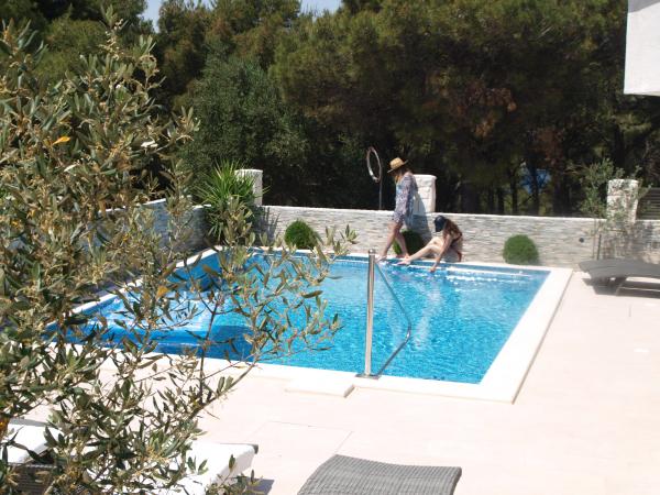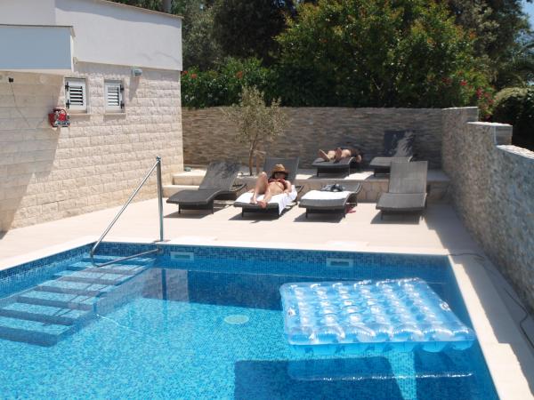 Apartmanok Marko található egy csendes részén a sziget Ciovo, Okrug Donji, Trogir közelében, amely az UNESCO védelme alatt. Apartmanok Marko található 100 méterre a strandtól, amely lehet elérni a pálya mentén a gyönyörű fenyves erdő és a zöld mediterrán növények. Minden apartman teljesen felszerelt, modern TV / óra légkondicionáló, Internet, 2 légkondicionáló, 2 fürdőszoba, nappali, konyha, parkoló, és egy terasz nyílik a more.Pored létesítmény épült medence 34 m2. A város Trogir közelében, hogy megadja neked a lehetőséget, élvezve a 4000 éves történelem és élvezze az éjszakai élet. A vendégek ügynökségeken keresztül kerül megszervezésre csónakot, robogók, és egynapos kirándulásokat a környező szigetekre. A repülőtér 10 km-re található. A repülőtér kényelmesen lehet bérelni személygépkocsit.
