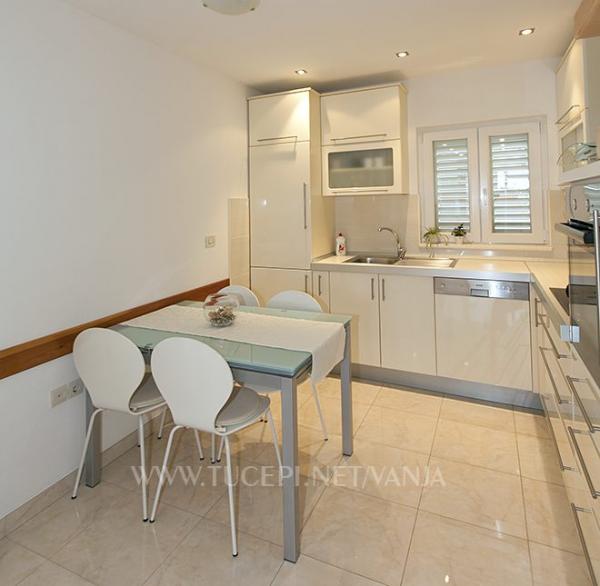 Apartman Vanja II központjában található, 30 méterre a strandtól, és közel az éttermek, posta, gyógyszertár ... Ez a modern berendezésű deluxe apartman húzódik, 3 emeletes, és mindegyik rendelkezik erkéllyel, kilátással a tengerre, ahol élvezheti a gyönyörű naplementét! Az első emeleten van egy tágas konyha (mosogatógép, mikrohullámú sütő) és egy nappali szoba a második emeleten egy szoba egy dupla ágy és egy fürdőszoba, a harmadik emeleten egy szoba egy dupla ágy és egy szoba, egy egyszemélyes ágy és egy fürdőszoba! Minden szobához TV, internet, légkondicionálás, ... Apartman 4 1 (max 6 fő) ideális egy család vagy két család, ahol mindenkinek megvan a saját adatvédelmi!