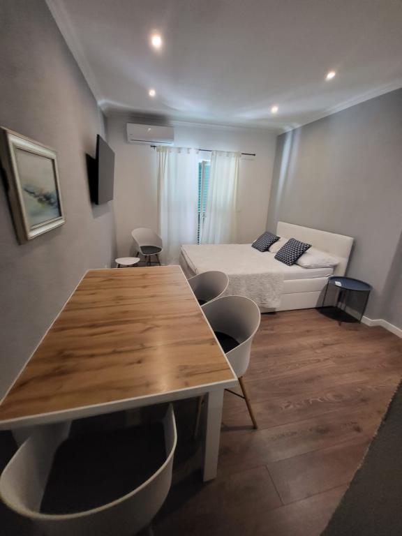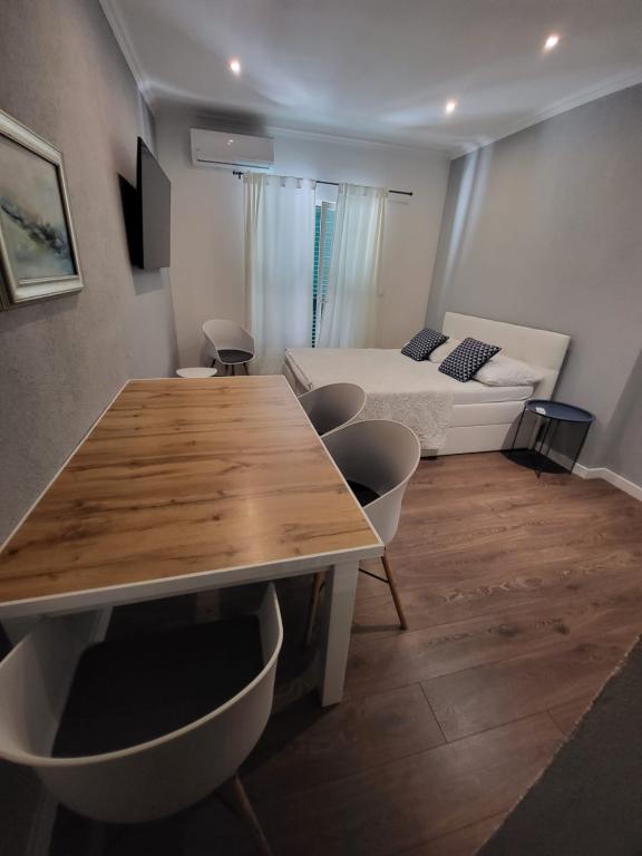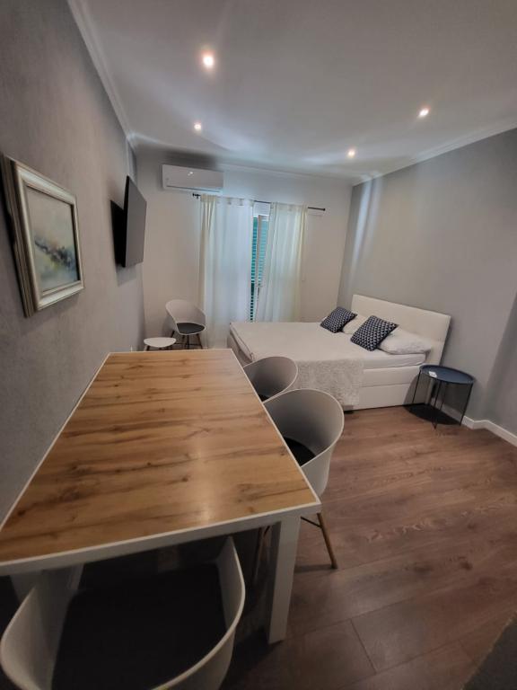 Teljesen felszerelt (felújított) apartmanok 30 méterre a tengertől, homokos strandtól, az objektum a város csendes részén, autópálya alatt található, étterem és kávézó 20 méterre található a háztól, valamint transzfert is biztosítunk. a repülőtér, ha repülővel érkezik, az apartmantól 300 méterre van egy gyönyörű Dračevac-öböl, ahol természetes árnyék a fenyőfáktól, a strand egy része nudistáknak van kialakítva, a kutyastrand 150 méterre található a háztól, körülbelül 20 percnyi autóútra élvezheti a gyönyörű kilátást az új skywalk látványosságról