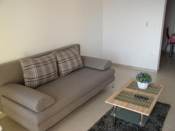 Gyönyörű szálláshely, mint a fényképeken, tiszta, jól felszerelt, gyönyörű tengerre néző kilátással. strand néhány méterre üzletek, pékségek, kávézók, éttermek közelében. Az otthon nagyon kellemes és vendégszerető emberek.