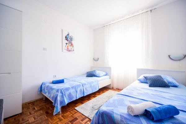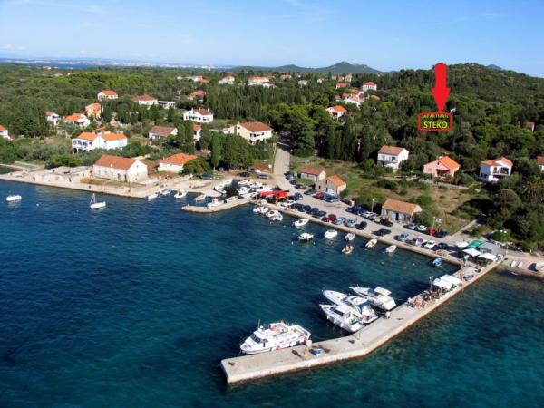Apartman STEKO található a kis halászfalu Muline Ugljan. Az apartman található, a padlón, a ház (70m2), nagy terasszal (20m2), amelynél a vendégek maguk külön bejárattal. Az apartman két hálószoba, nappali boravaksa műholdas TV, légkondicionáló, teljesen szállított konyha 6 fő részére, előszoba és fürdőszoba. Használata kültéri kandallók (grill) és külső zuhanyozó. A házban található egy csendes részén, a város körül az árnyékban egy fenyves erdőben, 200 méterre a strandtól, az északi oldalon. A homokos strand található, egy védett öbölben ideális a gyermekek számára 300 m-re délre. Parkolás saját zárt udvar