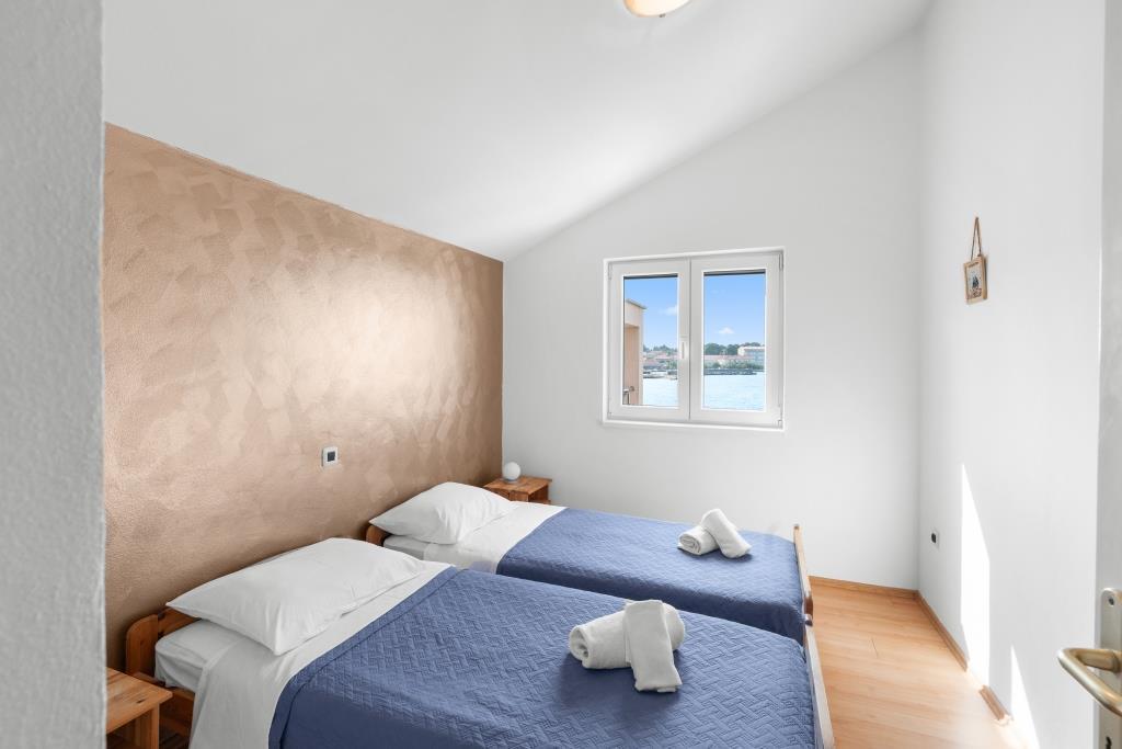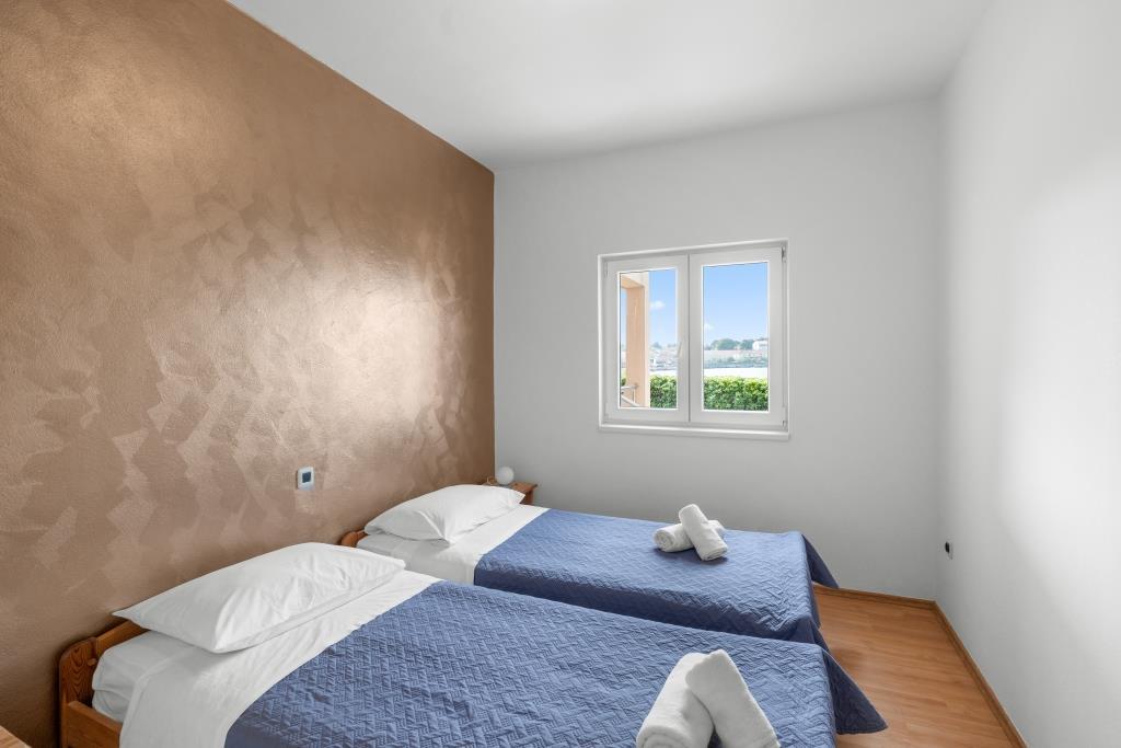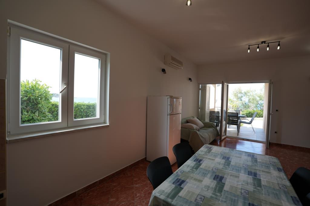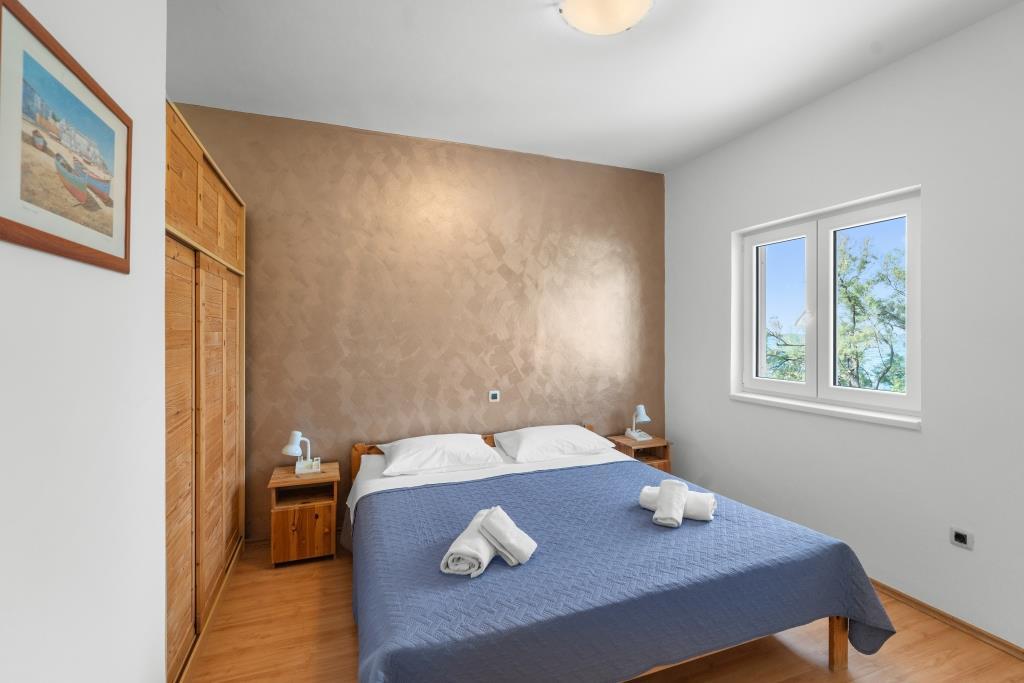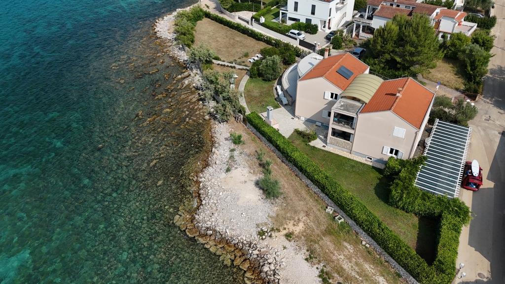 Az apartmanok közvetlenül a tenger mellett találhatók, nyugodt és barátságos vidéki környezetben. Minden apartmanhoz nagy terasz tartozik, kilátással a tengerre. A szobákat egy parkosított mediterrán kert veszi körül, amely alkalmas a gyermekek számára a játékra. A kertben napozóágyak és közös grillező áll rendelkezésre. Minden apartmanhoz 2 fürdőszoba tartozik. A közelben, 5 perces sétára található a központ, ahol a helyi gazdaságok termékeit kínáló piac, valamint üzletek és éttermek találhatók. A sürgősségi orvosi segítség éjjel-nappal elérhető. A közvetlenül az apartman előtti strand kavicsos, és a közelben több strand is található, ahol homokos strand is található. Érkezés autóval: az autópálya közvetlenül Gaženica kompkikötőjébe vezet. Ezt követően felszáll a kompra Prekóba. Nyáron gyakoriak a vonalak, legalább óránként járnak. A Preko kompkikötőből a sziget főútján éri el Ugljan városát, amely 10 km-re található. Érkezés repülővel: Zadar repülőtérről busszal vagy taxival 15 perc alatt. Közvetlenül megérkezik Gaženica kompkikötőjébe, ahol felszáll a Prekóba tartó kompra.