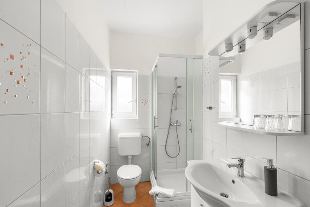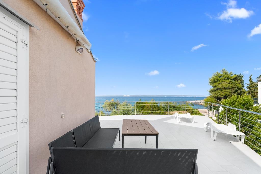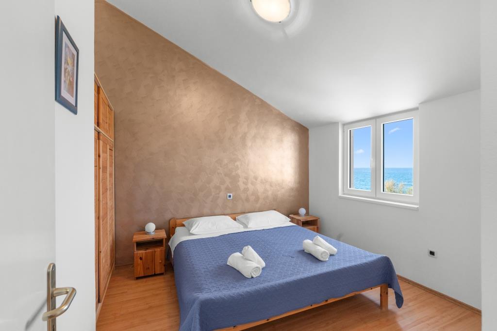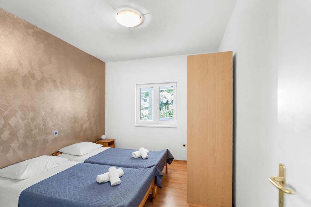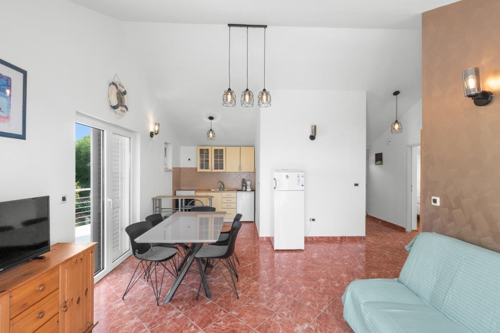 Az apartmanok közvetlenül a tenger mellett találhatók, nyugodt és barátságos vidéki környezetben. Minden apartmanhoz nagy terasz tartozik, kilátással a tengerre. A szobákat egy parkosított mediterrán kert veszi körül, amely alkalmas a gyermekek számára a játékra. A kertben napozóágyak és közös grillező áll rendelkezésre. Minden apartmanhoz 2 fürdőszoba tartozik. A közelben, 5 perces sétára található a központ, ahol a helyi gazdaságok termékeit kínáló piac, valamint üzletek és éttermek találhatók. A sürgősségi orvosi segítség éjjel-nappal elérhető. A közvetlenül az apartman előtti strand kavicsos, és a közelben több strand is található, ahol homokos strand is található. Érkezés autóval: az autópálya közvetlenül Gaženica kompkikötőjébe vezet. Ezt követően felszáll a kompra Prekóba. Nyáron gyakoriak a vonalak, legalább óránként járnak. A Preko kompkikötőből a sziget főútján éri el Ugljan városát, amely 10 km-re található. Érkezés repülővel: Zadar repülőtérről busszal vagy taxival 15 perc alatt. Közvetlenül megérkezik Gaženica kompkikötőjébe, ahol felszáll a Prekóba tartó kompra.