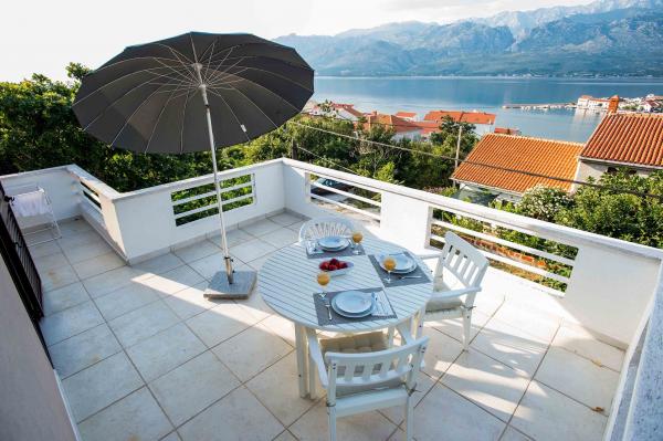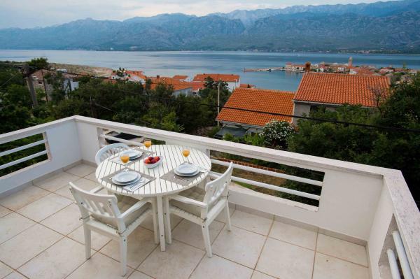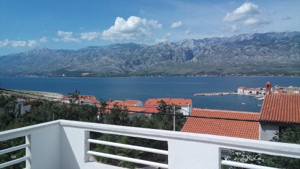 Ebben az évben felújított ház-tetők és homlokzatok kiváló hőszigetelés, található egy csendes környéken Vinjerca, zöldövezetben található, mintegy 100 m-re a tengertől. A lakás az első emeleten. A tágas terasz, van egy gyönyörű kilátás nyílik a városra, a kikötőre, a tengerre. A kilátás nyúlik néhány kilométerre, keletre és nyugatra, hogy a nagy részét a Velebit-csatorna, és természetesen a nagyon Velebit. A lakás egy nagy nappali, amelyen belül egy része az étkező és teljesen felszerelt konyha. A szobában van TV-kamera és a számos helyi és műholdas csatornákkal, tágas kanapé, amely egy extra ágy egy harmadik személy. A hálószobában egy nagy franciaágy 180 x 200 cm, gardrób, nagy tükör, kis komód. Egy kis fürdőszoba WC-vel minden amire szükséged van. Az egész ház ingyenes Wi-Fi internetkapcsolat. Amellett, hogy vagy a közelében a ház parkoló. A sportrajongók a közeli utakat biciklizni, mountain bike, egy híd ugrás, bungee jumping és a Paklenici- szabad climing.