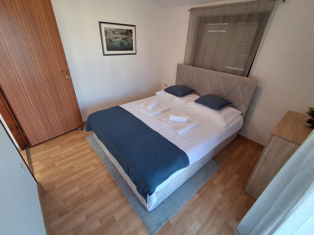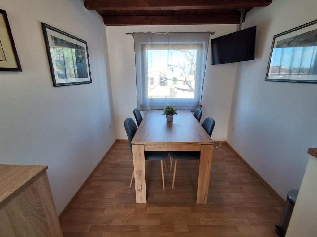 Szép és modern berendezésű négyszemélyes apartman Vir szigetén, ideális családi nyaraláshoz. Néhány percre található a gyerekeknek megfelelő strandtól, a központtól, ahol egy tengerparti sétány van, a postától, a templomtól, a közvetlen közelében lévő buszpályaudvartól és az üzlettől. A lakás 50 m2 alapterületű, külön bejárattal rendelkezik. Az ár tartalmazza a parkolóhelyet, az egész lakásban klímaberendezést, grillezőt, nyári zuhanyzót az udvaron. Két hálószoba, zuhanyzós fürdőszoba, konyha étkezővel és terasz található. Vir szigetének csendes részén található, mégis minden elérhető közelségben, ideális egy ideális nyaraláshoz.