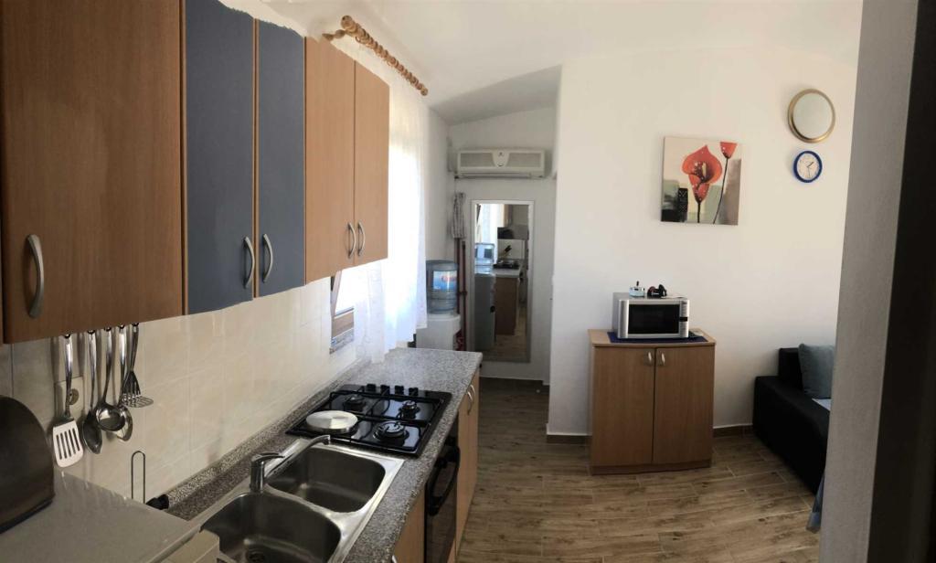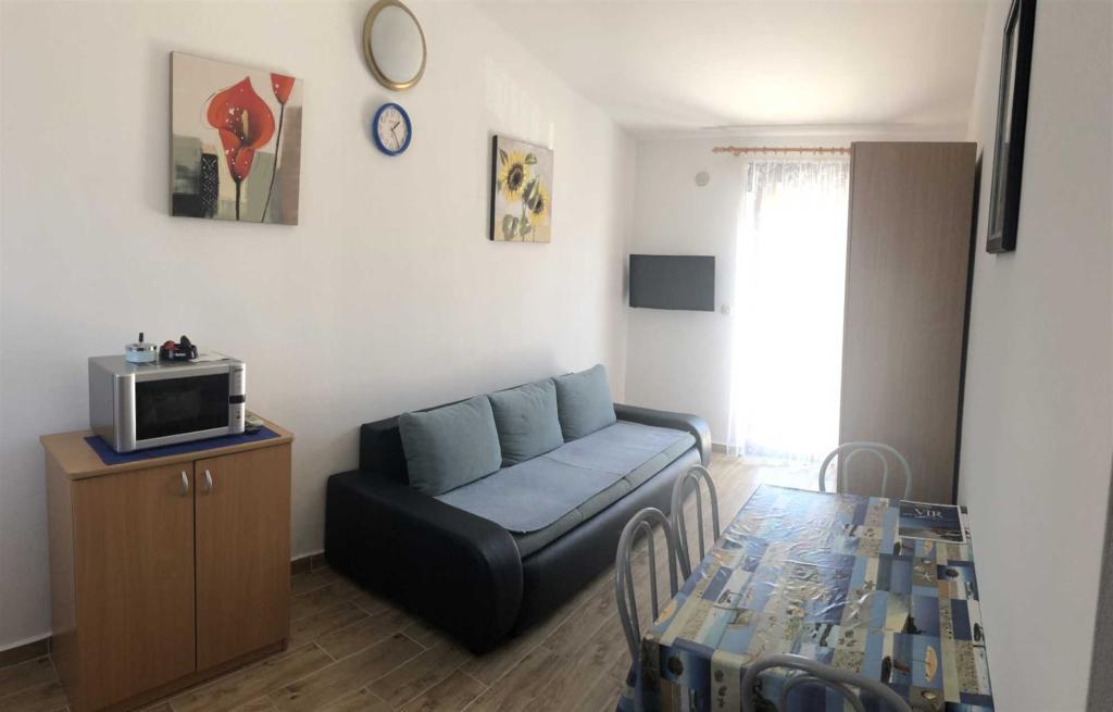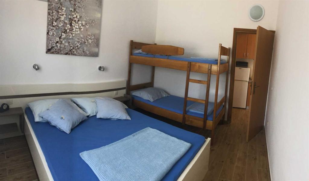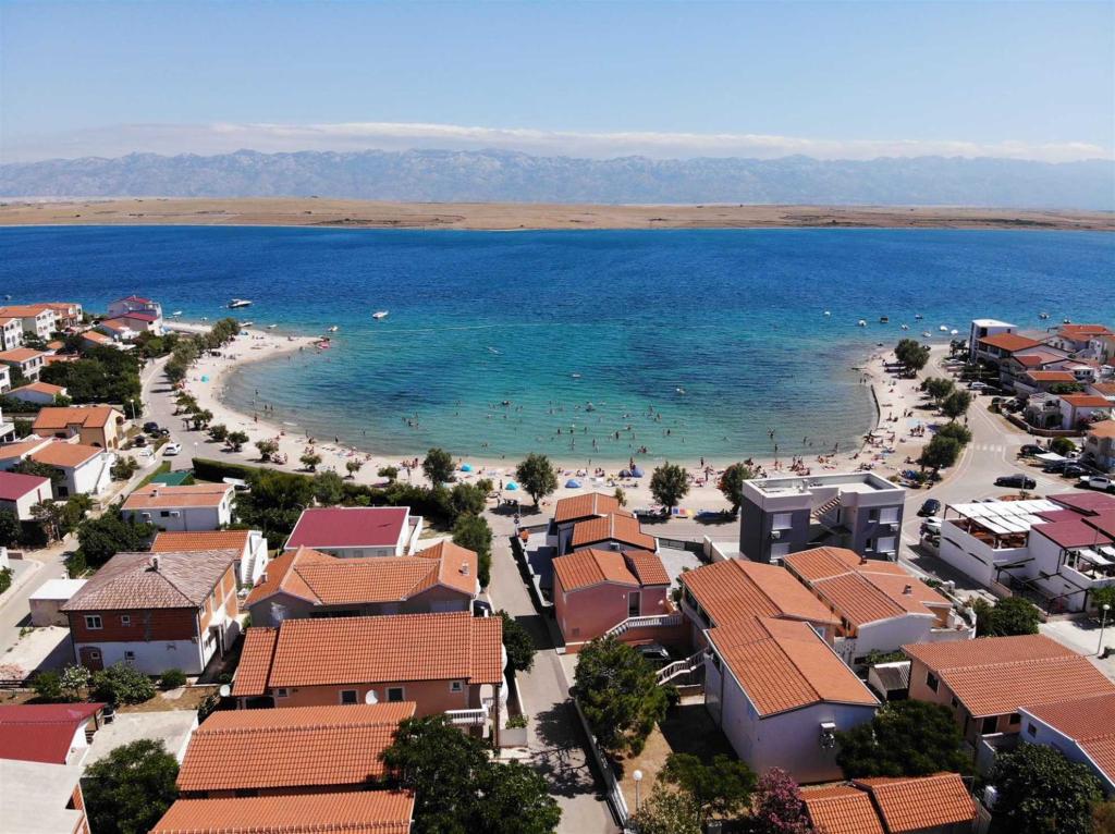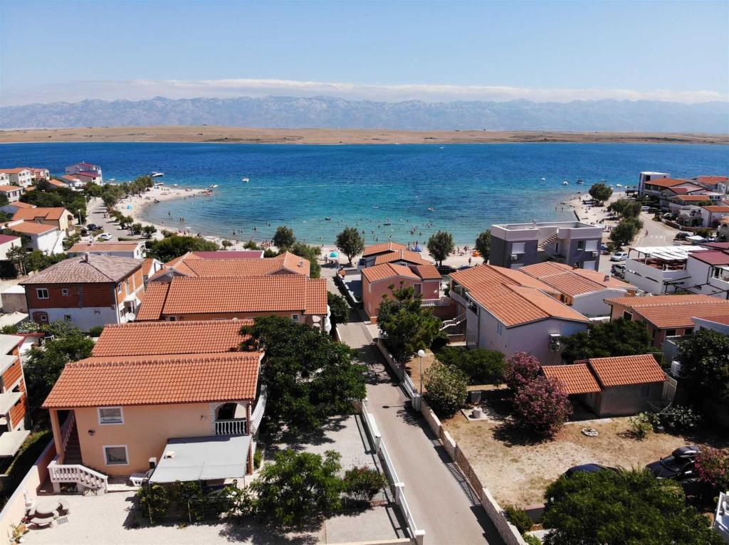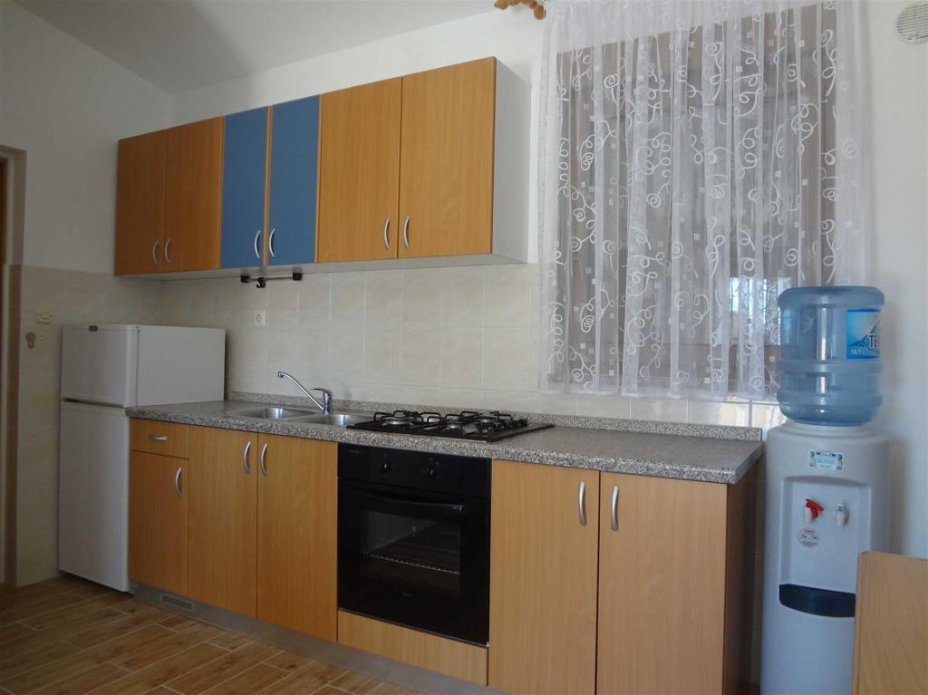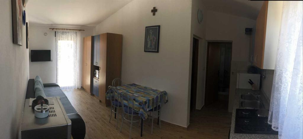 A Žitna uvala strandtól 70 méterre található (***) 4 fő részére alkalmas apartman az első emeleten található. Az apartman LED TV-vel (TV+SAT), rádióval, Wi-Fi-vel, egy autó számára kialakított parkolóhellyel a bekerített udvarban, légkondicionálóval (használat benne van az árban) felszerelt. A konyhában minden szükséges felszerelés és háztartási gép megtalálható (például hűtőszekrény nagy fagyasztóval, mikrohullámú sütő, vízmelegítő stb.), a hálószobában egy franciaágy és egy emeletes ágy található, a nappaliban egy pótágy található (pótággyal az apartman 5 fő befogadására alkalmas), valamint tágas, 20 m2-es fedett erkély, kilátással a tengerre (Pag szigetére és a Velebitre), asztallal, székekkel és nyugágyakkal.