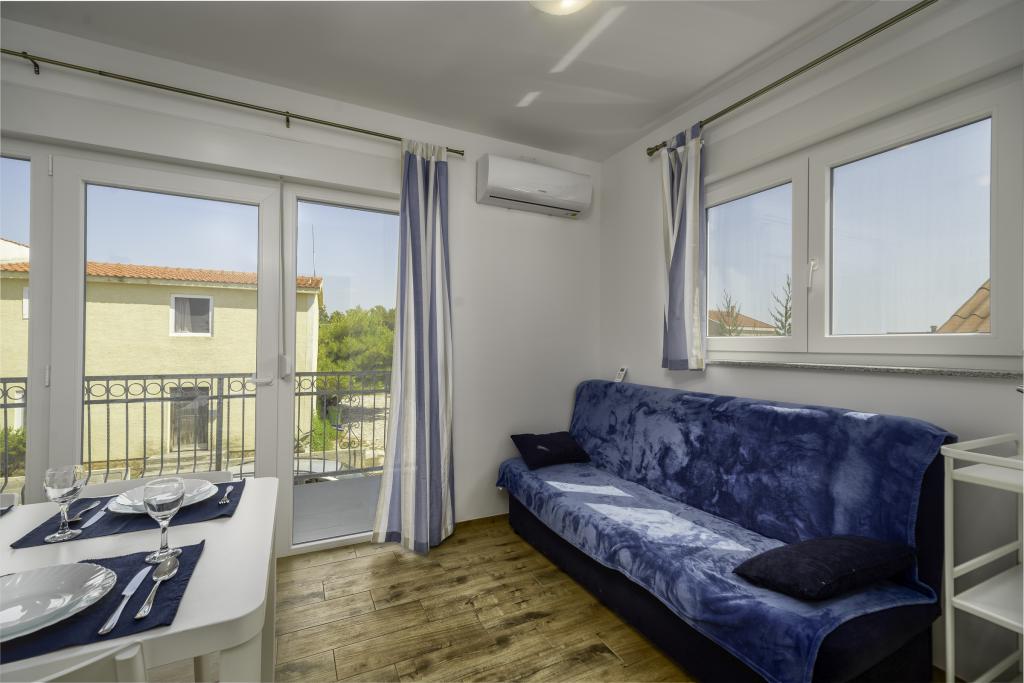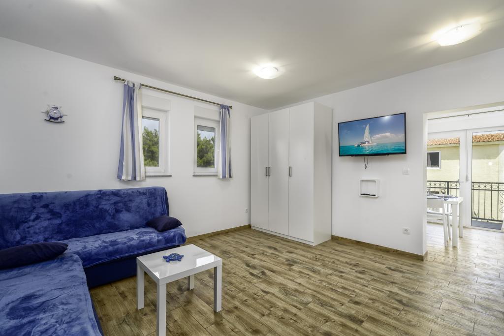 Az apartman Rebecca egy újonnan épült épületben található az első emeleten, tágas erkéllyel. Teljesen felszerelt a kellemes tartózkodásra (légkondicionálás, intelligens tv, kamra minden ablakban, mosogatógép), városi vízellátó rendszer. A létesítmény a sziget déli oldalán található, 5 perc. séta a strandtól. Parkolási lehetőség biztosított, a sziget egy híddal csatlakozik a szárazföldhöz.