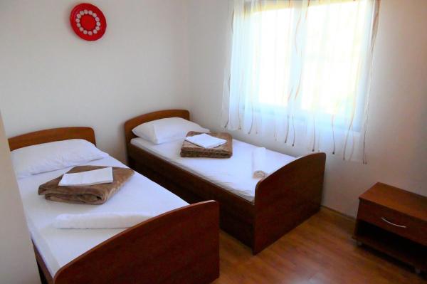 Mi található a területen Radovanjica mintegy 300 méterre van a strand az öböl Radovanjica. Mi képesek apartman kiadó egy elkülönített területen 30m2 és terasz 9m2. A lakás új építésű, újonnan felszerelt: dupla ágy extra, fürdőszoba, konyha, TV, légkondicionáló. Mi is van egy nagy lakás 70m2 terasz 10m2. A lakás külön bejárattal és áll egy közös nappali kapcsolódik a konyha, fürdőszoba és terasz, valamint három hálószoba, hogy lehet bérelni, és egymástól függetlenül.