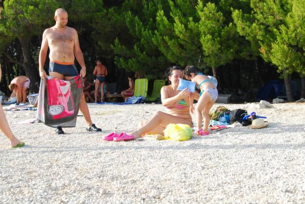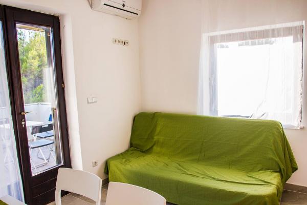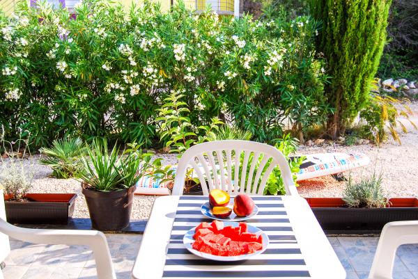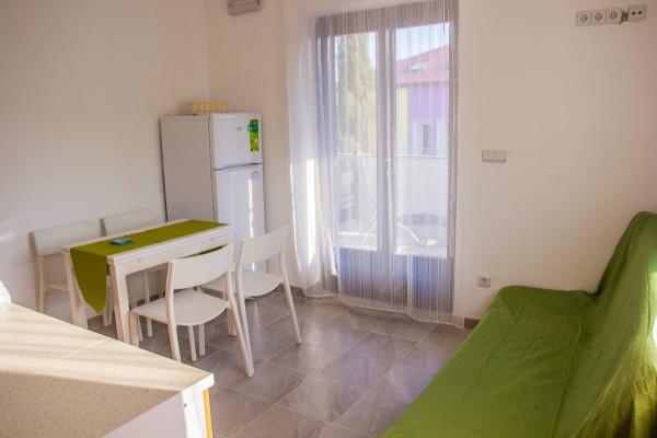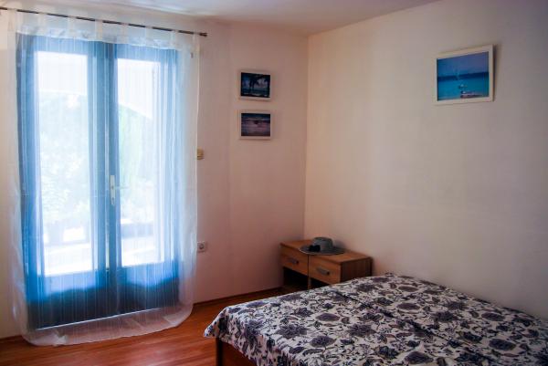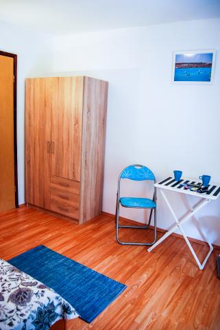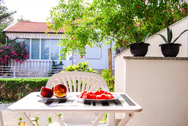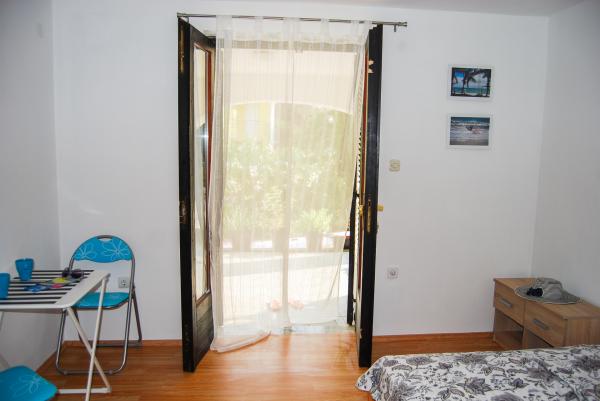 Lakás konyhával, hálószobával és nagy terasszal, parkolóval, légkondicionálóval, csendes környéken, fenyves erdő körül, 150 m-re a kavicsos strandtól, fenyves erdővel. Ideális, ha el akarja kerülni a tömegetől és a zajtól. A lakás a ház első emeletén helyezkedik el, külön lépcsővel, a többi emeleten nincs más vendég.