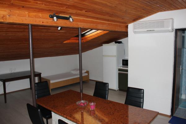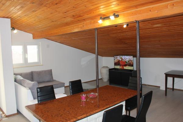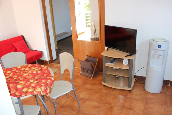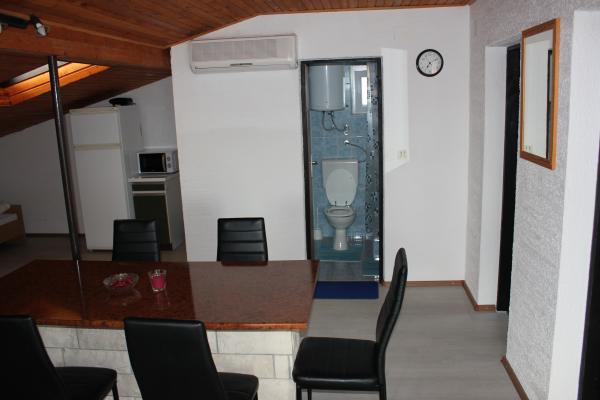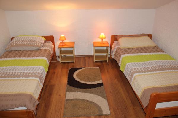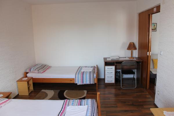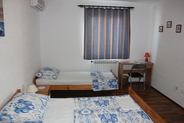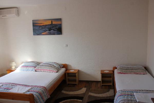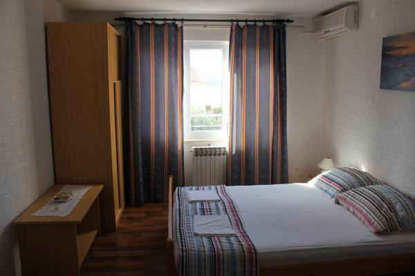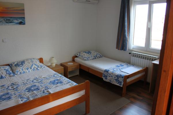 - 3 apartmanos ház. Két apartman (A1, A2) található az első emeleten, míg a harmadik (A3) a második emeleten. Az A1 és A2 három ágyas egy hálószobában, egy dupla és egy egyszemélyes ággyal. Mindkettő rendelkezik egy erkélyes konyhával és egy kis fürdőszobával. Az A3-ban két hálószoba található 4 ággyal, kis konyha és fürdőszoba. Minden apartmanban Wi-Fi, TV, légkondicionáló, hűtőszekrény, mikrohullámú sütő, vízforraló és parkoló található. A ház 300 méterre található a tengertől / strandtól Lučica és 250 méterre a szupermarkettől. A csőből származó víz nem ivóvíz.