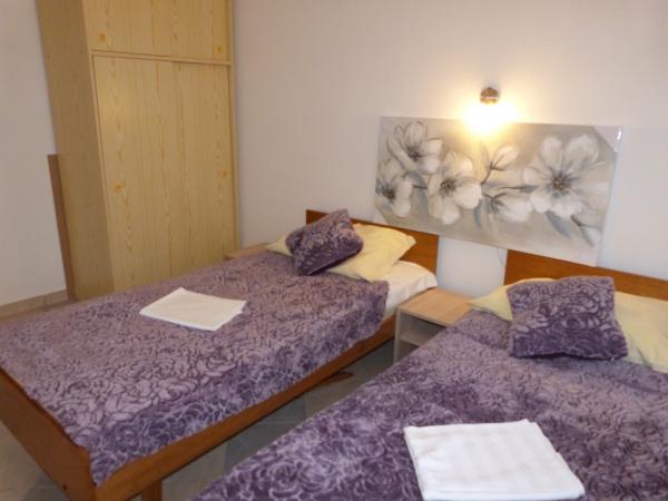 A létesítmény Vira csendes részén található, közel a strandhoz, a központhoz és minden más látnivalóhoz. A legközelebbi strand közelében találhatóak 1 étterem, 3 kávézó, 1 pékség, 1 gyorsétterem és egy gyermeki játszóház. A központba kellemes, 10 perces sétára található a tenger, ahol számos látnivaló, számos étterem, pizzéria és éjszakai kávézó várja a fiatalokat. Élő zenét élőben tartanak a hétvégéken, ahol szabadon pihenhet népszerű és híres horvát énekesekkel. Apartman P1 - földszint - 2 szoba Apartman P2 - földszint - 3 szoba (2 WC-vel fürdőszobával) Apartman K - a földszinten - 2 szoba Apartman D - az első emeleten - 3 szoba