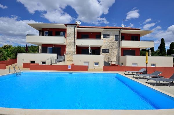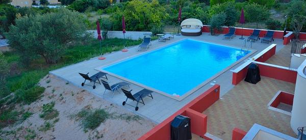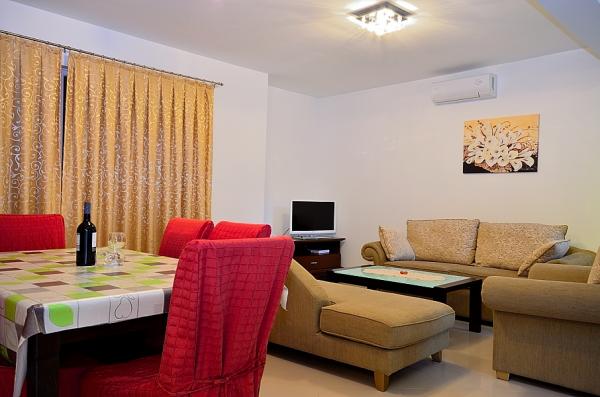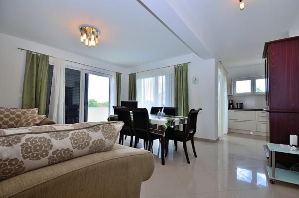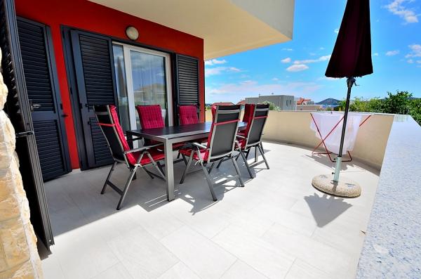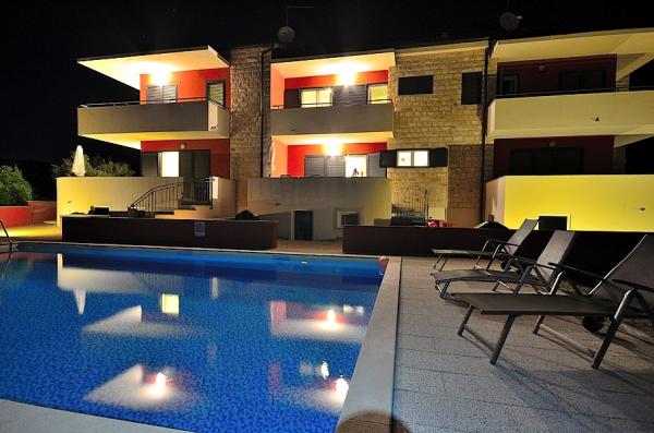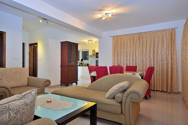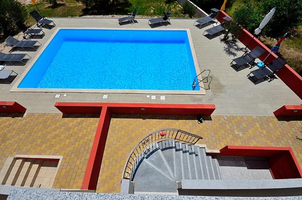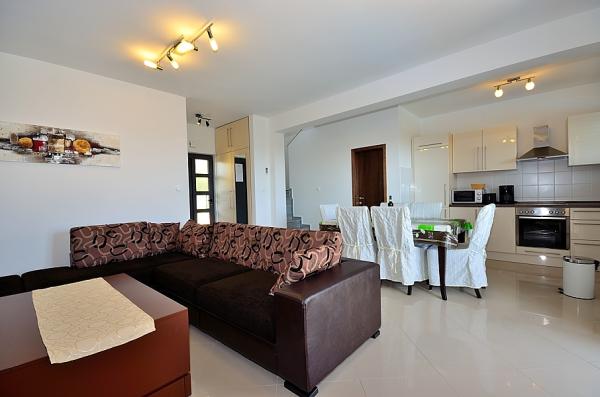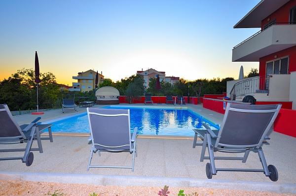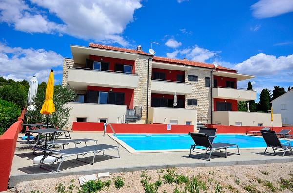 Vodice- újépítésű ház, medencével ház 6 2, 400 m-re a tengerparttól, 500 m-re a Blue Beach (strand kék zászló) A ház áll földszinten, ahol a WC, konyha és nappali, nagy terasz az első emeleten három hálószoba, fürdőszoba és terasz. A használhatják a medencét, 2-3 parkolóhely, grill, Wi-Fi, TV, műholdas,