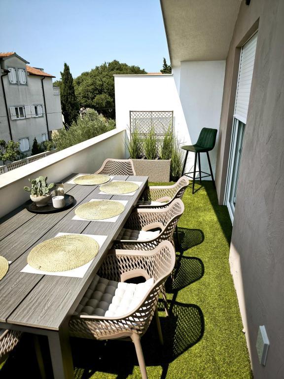 Teljesen berendezett apartmanok Vodice csendes részén, a tengertől számított második sorban. A szálláshely 3 perc sétára található a fő strandtól és 10 percre a központtól... Apartmanjaink előnye, hogy minden a ház közelében van, így nem kell autót használnia... Az apartmanokhoz gyönyörű, nagy terasz tartozik, ahonnan kilátás nyílik a tengerre, a szigetekre és a központra... Az egész emelet 9 fő részére kiadó, ideális egy nagy család számára....