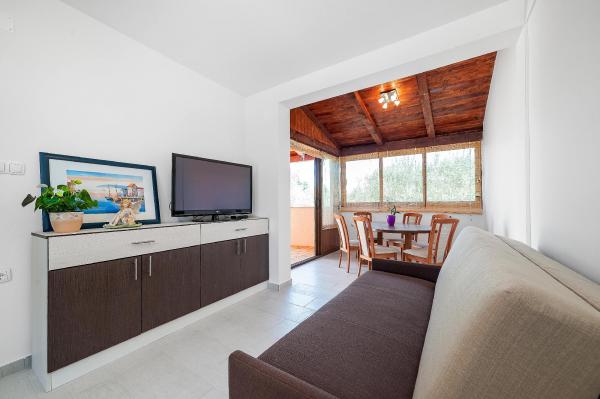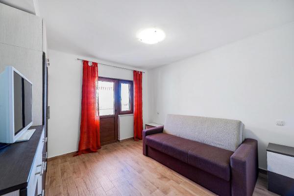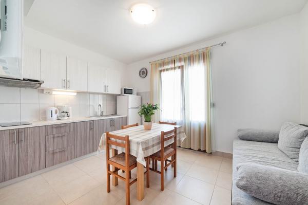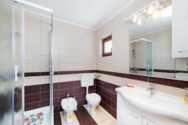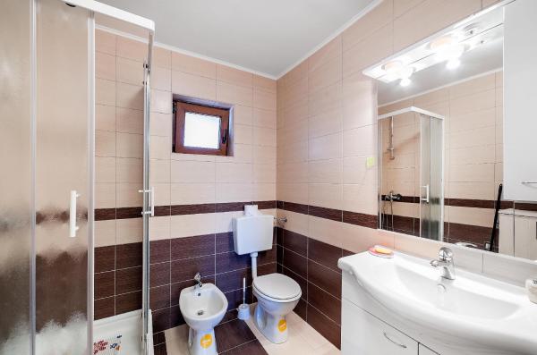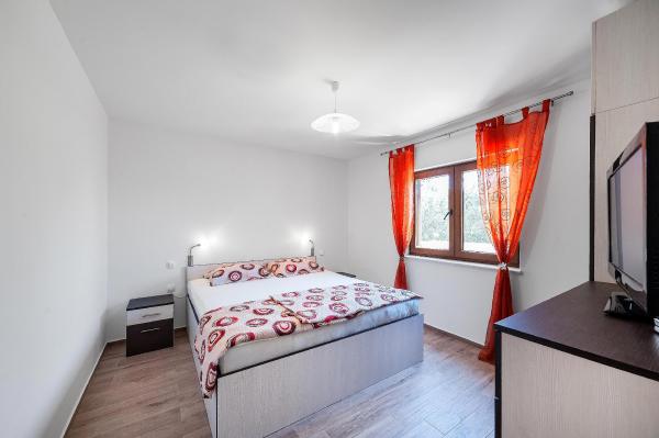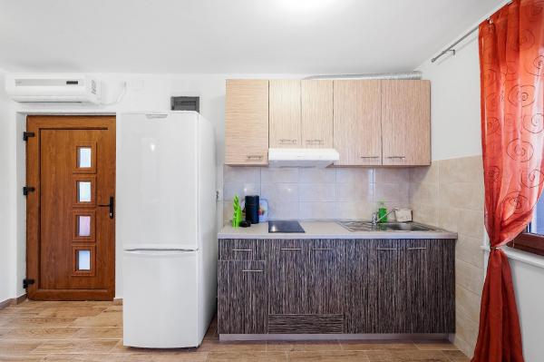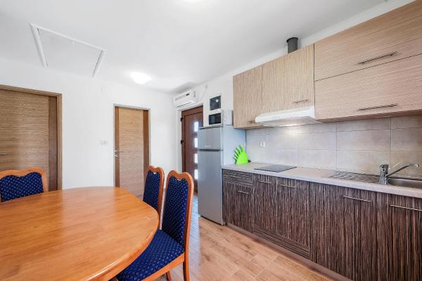 Teljesen felszerelt, modern apartman egy csendes részén Vodice, mindössze 300 méterre a tengertől. A létesítmény található, 5 perc sétára a strandtól és a Punta és 15 percre a központ Vodice. A strand a legnagyobb vízi park az Adria, amely alkalmas a gyermekek és a felnőttek. Kínálunk minőségi szállás új, teljesen felszerelt, modern apartmanokat kínál. A lakás az első emeleten (2 +2) mérete 48 m2 egy hálószoba, zuhanyzós fürdőszoba, konyha, étkező, nappali kinyitható ággyal, két terasz, tengerre néző, két LCD TV / műholdvevő, légkondicionáló, ingyenes Wi-Fi-vel Internet és parkoló. Nagyobb alapterületű lakás 4 +2 70m2 két hálószoba, fürdőszoba zuhanyzóval, konyha, étkező, nappali kihúzható kanapéval, két nagy terasszal, három LCD TV / műholdvevő, légkondicionáló, ingyenes WiFi internet és két parkoló helyeken.