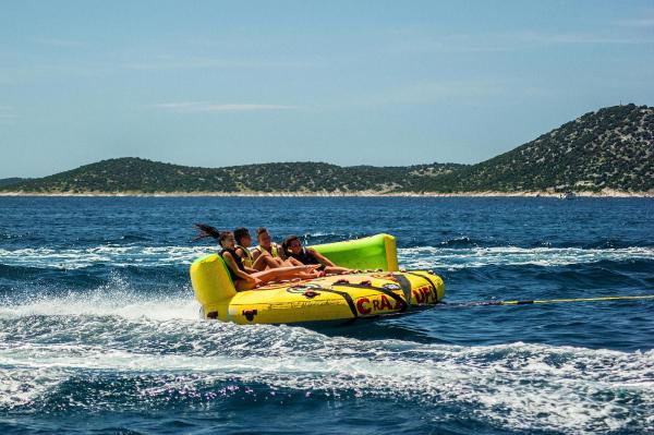 Lakossági adót az az ár tartalmazza.Család foglalkozik a közlekedési szolgáltatások, bérleti kisteherautók, hajók, síléc, banán, csövek, és jet-ski a strandon előtt Hotel Punta és Dalmatino. Részletek megtekinthetők honlapunkon: www.obrt-zlatnacipelica.hr vagy a YouTube-on: Shark jet ski víz, cápa jet ski, banán Vodice Horvátország. Használhatja a motor, valamint a szervező a jet ski szafari, kirándulások a nemzeti parkok Krka és a Kornati, látogasson el a középkori Sibenik székesegyház, Városi Múzeum, és a Fort ... Disco Hacienda (vezető) és Aurora (Primosten) ideális azok számára, akik éjjel szórakoztató.