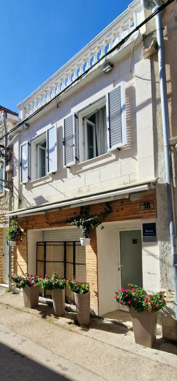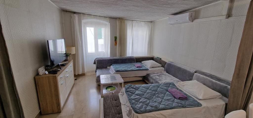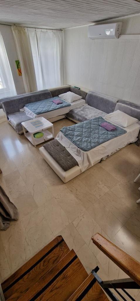 Apartmanok a központban 40 m-re a vízparttól és a kompkikötőtől. Közvetlenül a strand mellett található. A ház kétszintes, 100m2. - Stúdió apartman 45m2 2 fő részére, nappali, konyha, fürdőszoba wc - Apartman 75m2, 1 kétágyas szoba terasszal, nappali 2 fő részére, fürdőszoba wc, konyha. - Lakás 100m2, 1 kétágyas szoba terasszal, 2 egyágyas szoba, nappali 2 fő részére, 2 kanapé matraccal, konyha, fürdőszoba wc Az egész ház légkondicionált, síkképernyős internettel, nagy LCD TV-vel. Parkolás a közelben található.